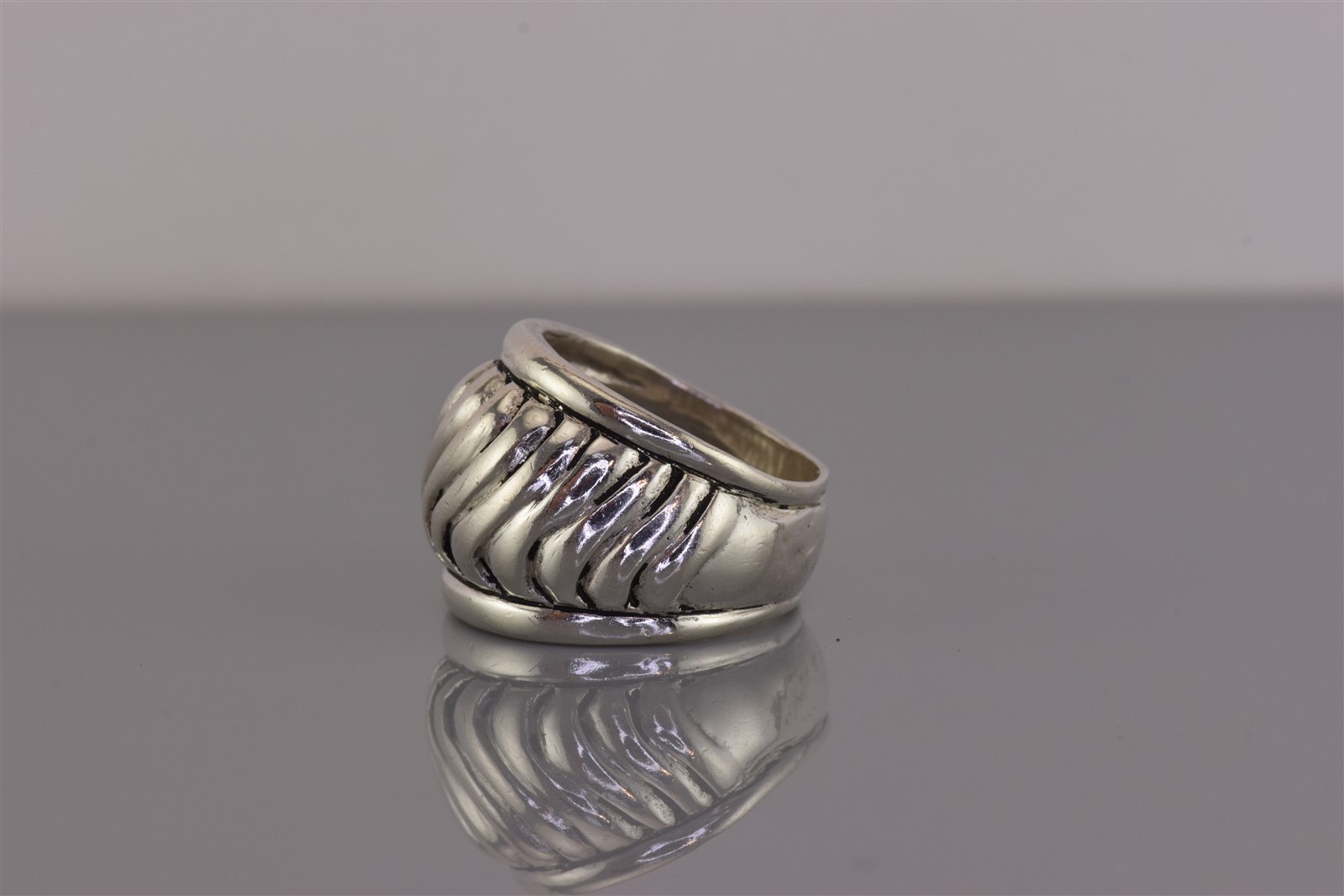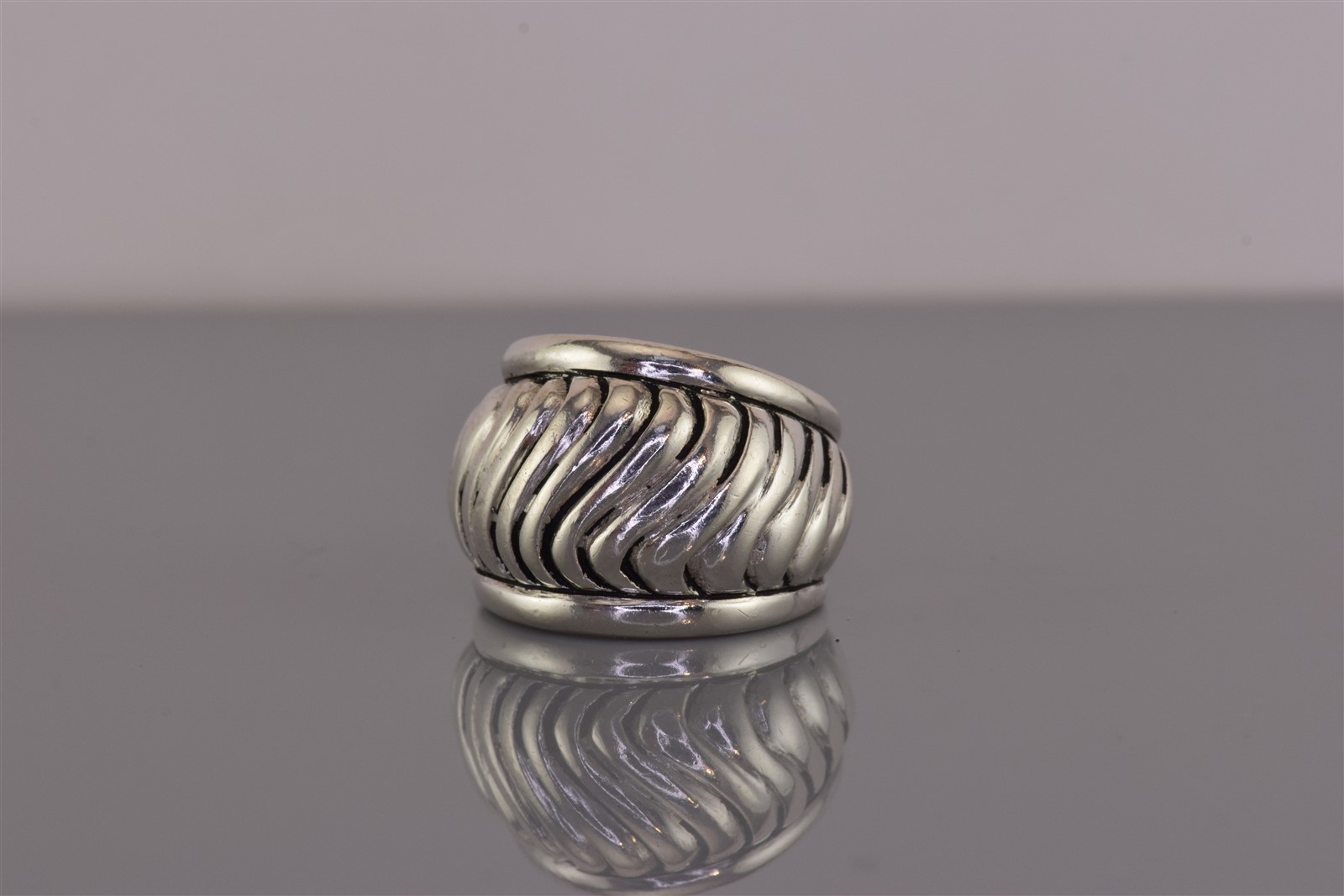 как выглядит Sterling Silver 16mm Swirled Rimmed Dome Band Ring 9g 925 Sz: 6 фото