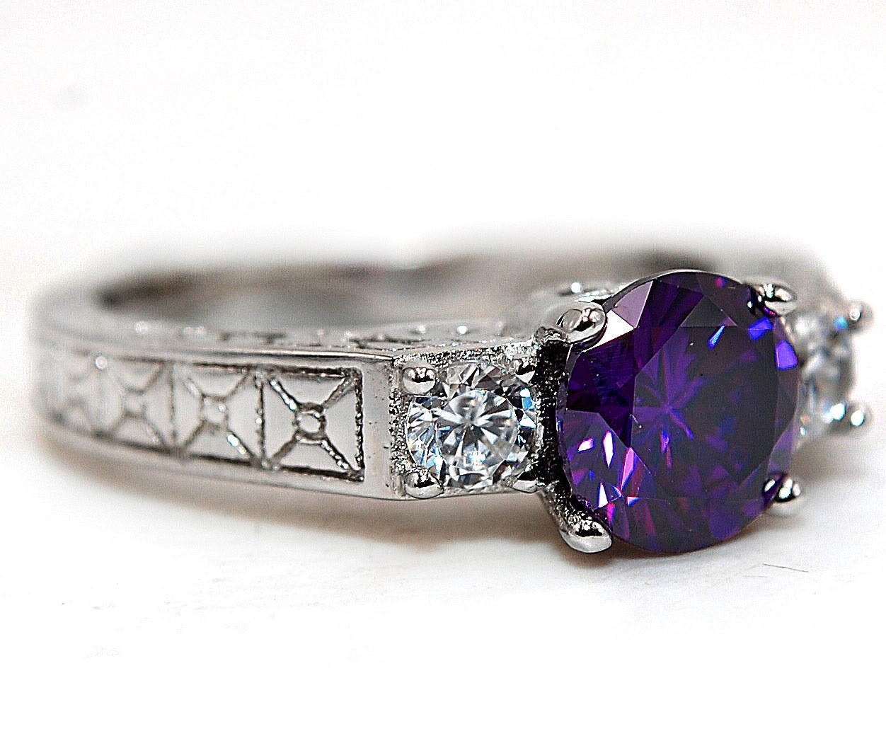 как выглядит 2CT Amethyst Topaz 925 Solid Sterling Silver Ring Jewelry Sz 6,7,8,9 ZB8 фото