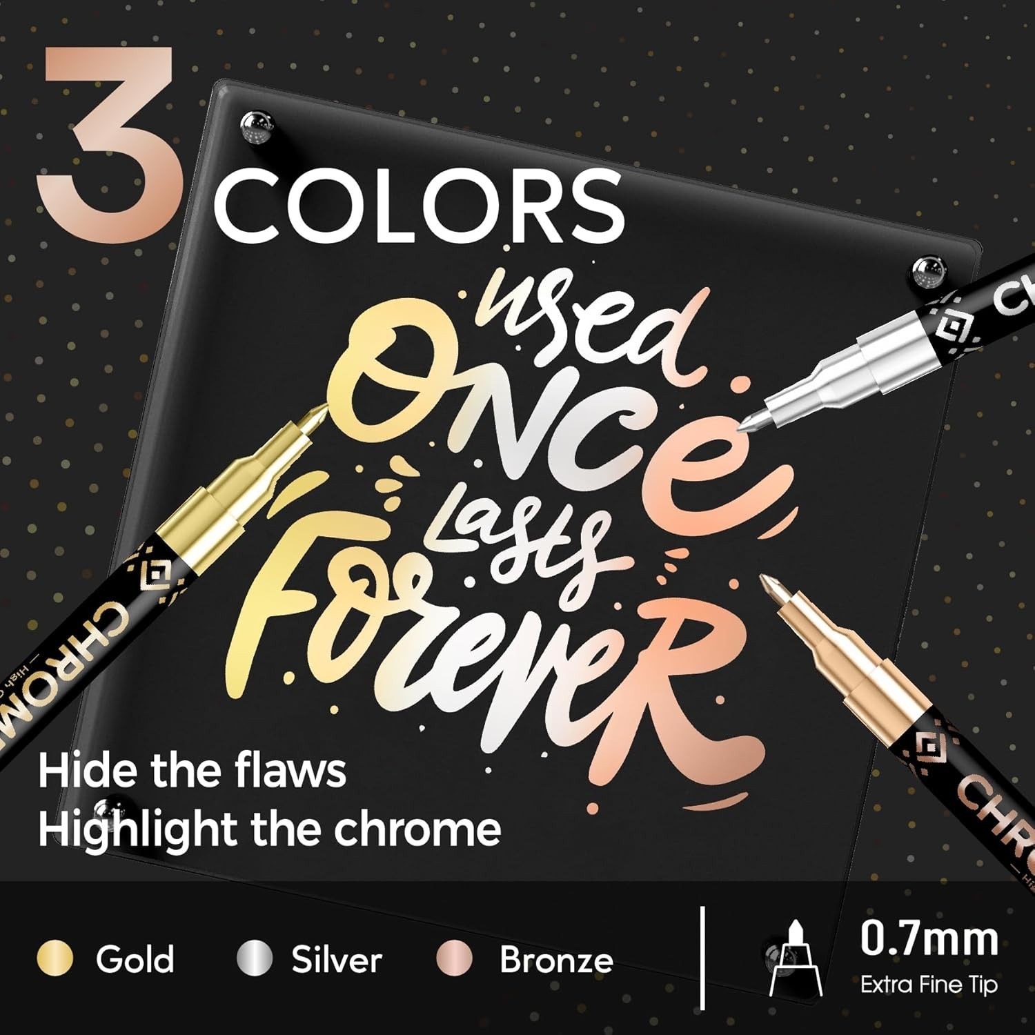 3Pcs Chrome Paint Markers, Permanent Mirror Liquid Chrome Pens for Plastic, M...