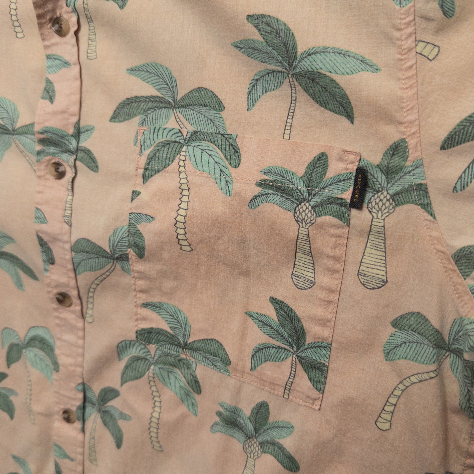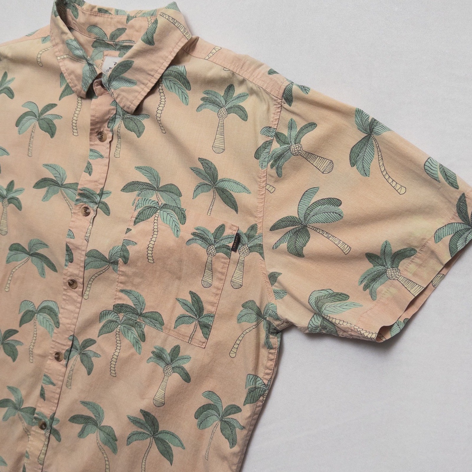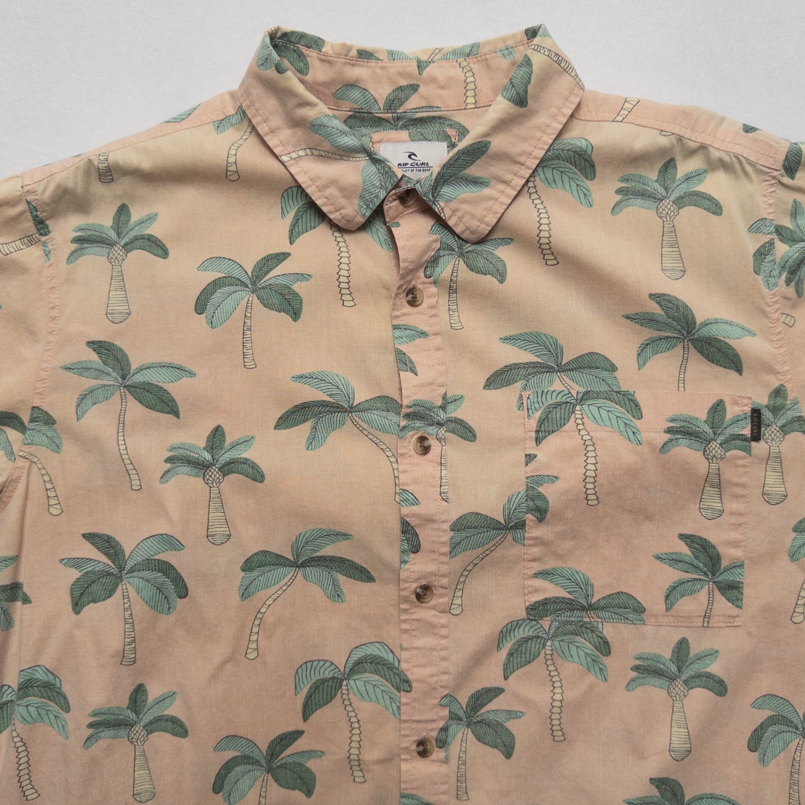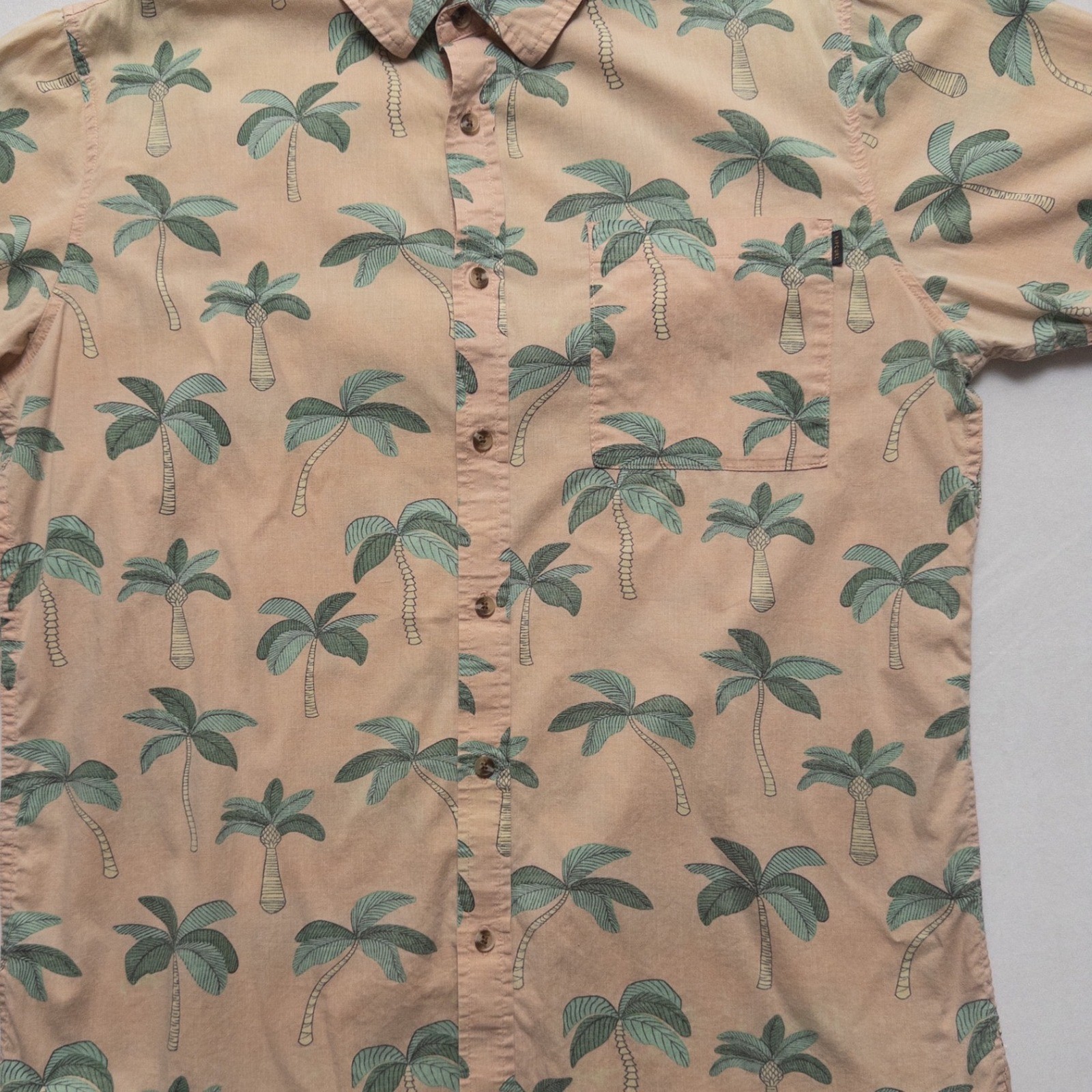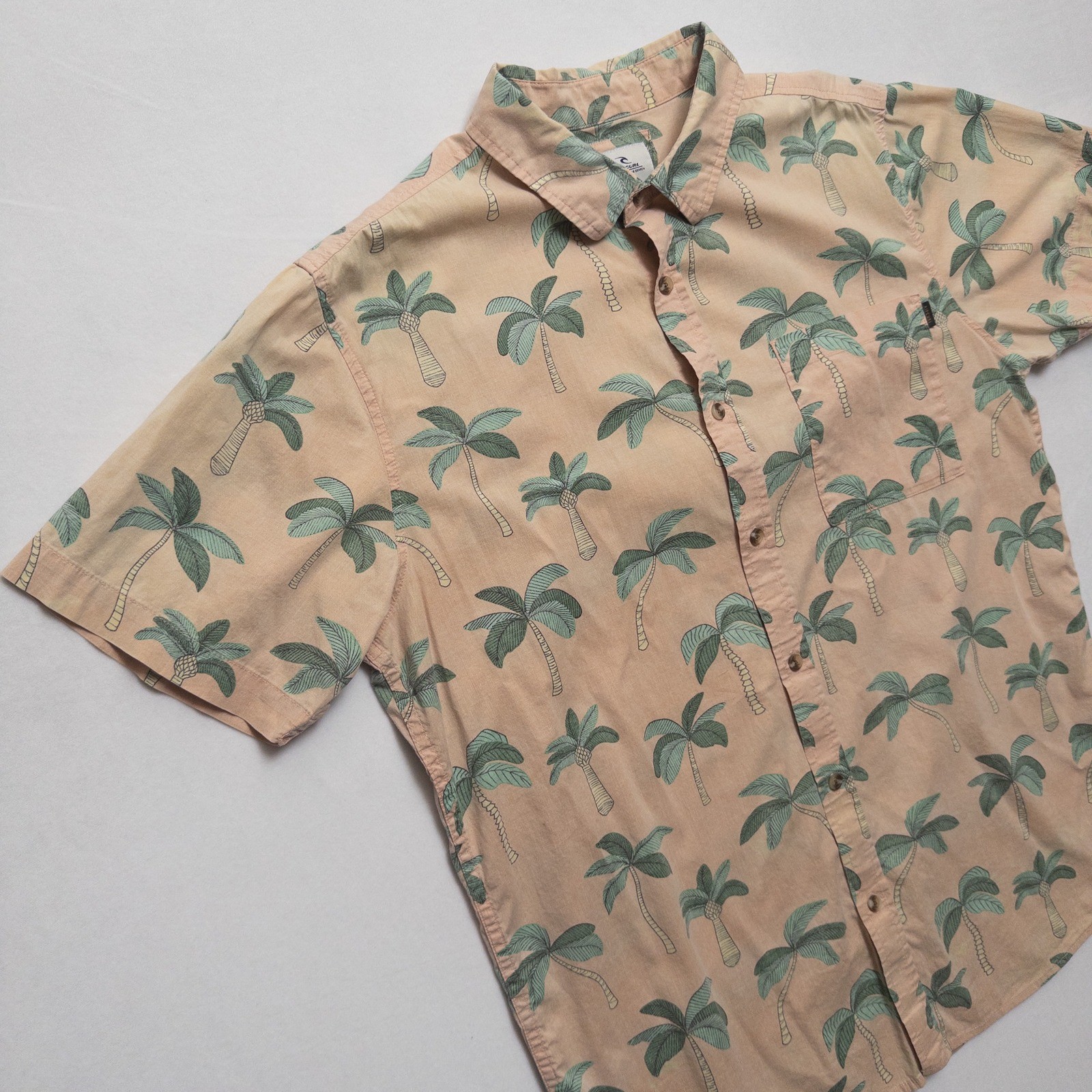 Rip Curl Hawaiian Shirt Mens Large Palm Tree Peach Tan Aloha