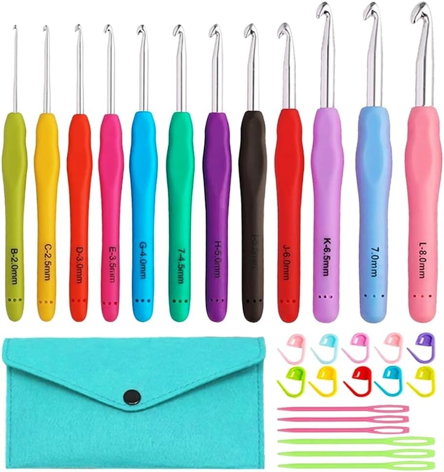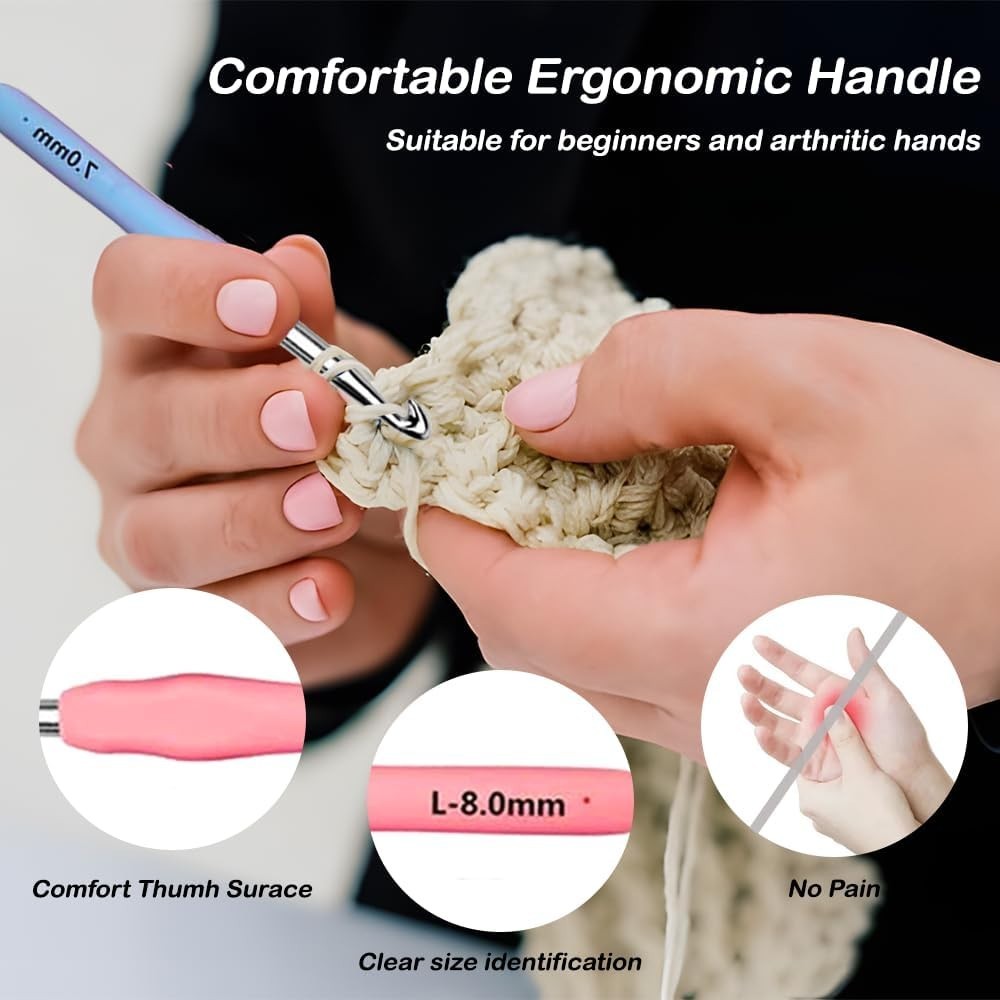 12 Size Crochet Hooks 2.0mm 8.0mm, Ergonomic Crochet Hooks Set with Case, Cro...