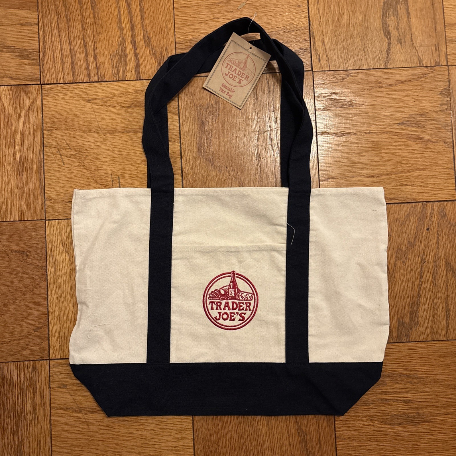 Trader Joe's Reusable Canvas Tote Bag - Large - Navy Blue - New With Tags NWT