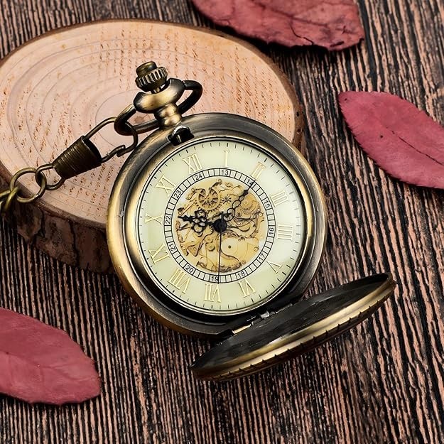 Vintage Pocket Watch for Men with Roman Numerals and Chain, 1Pc