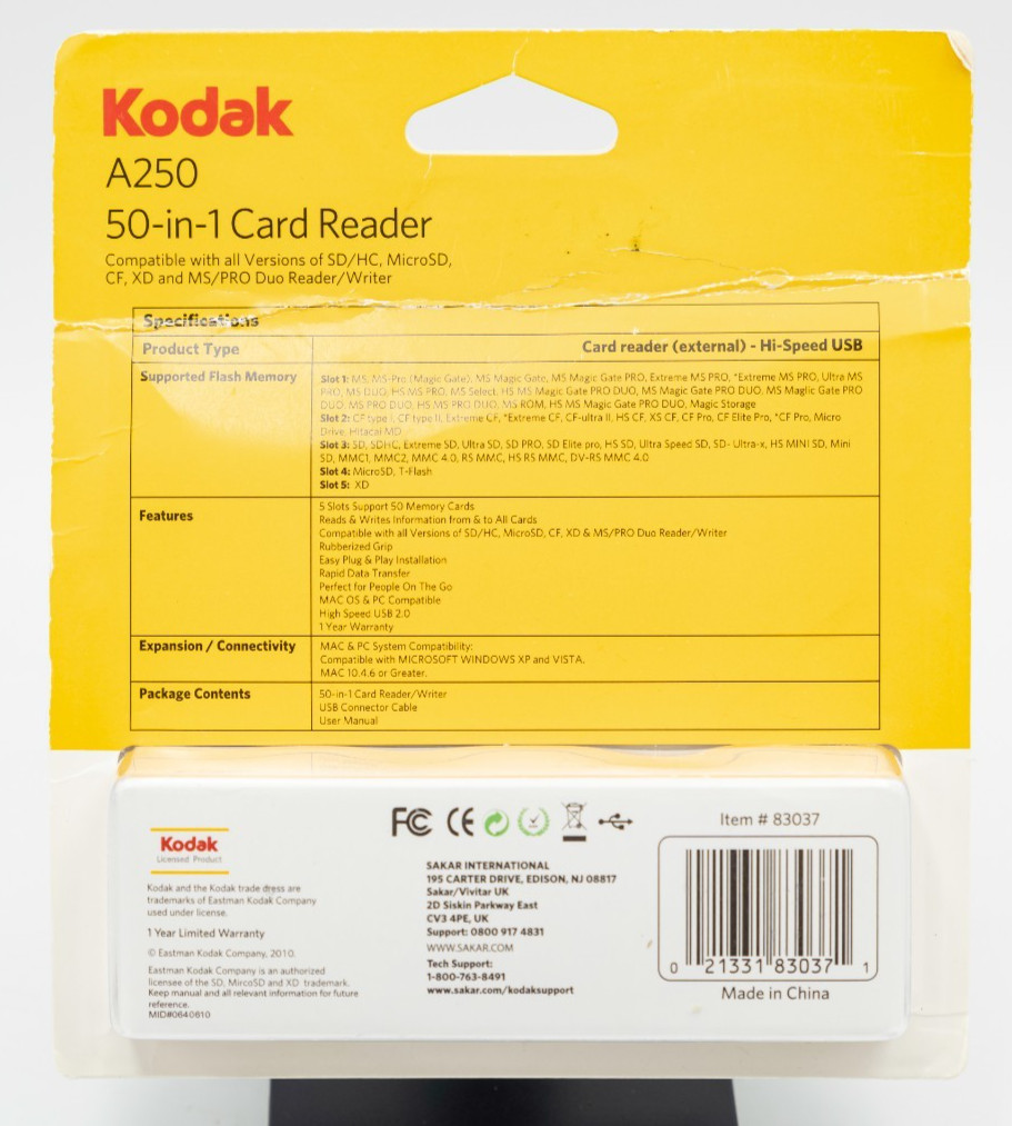 Kodak A250 50-in-1 Card Reader Writer MacOS PC Compatible USB