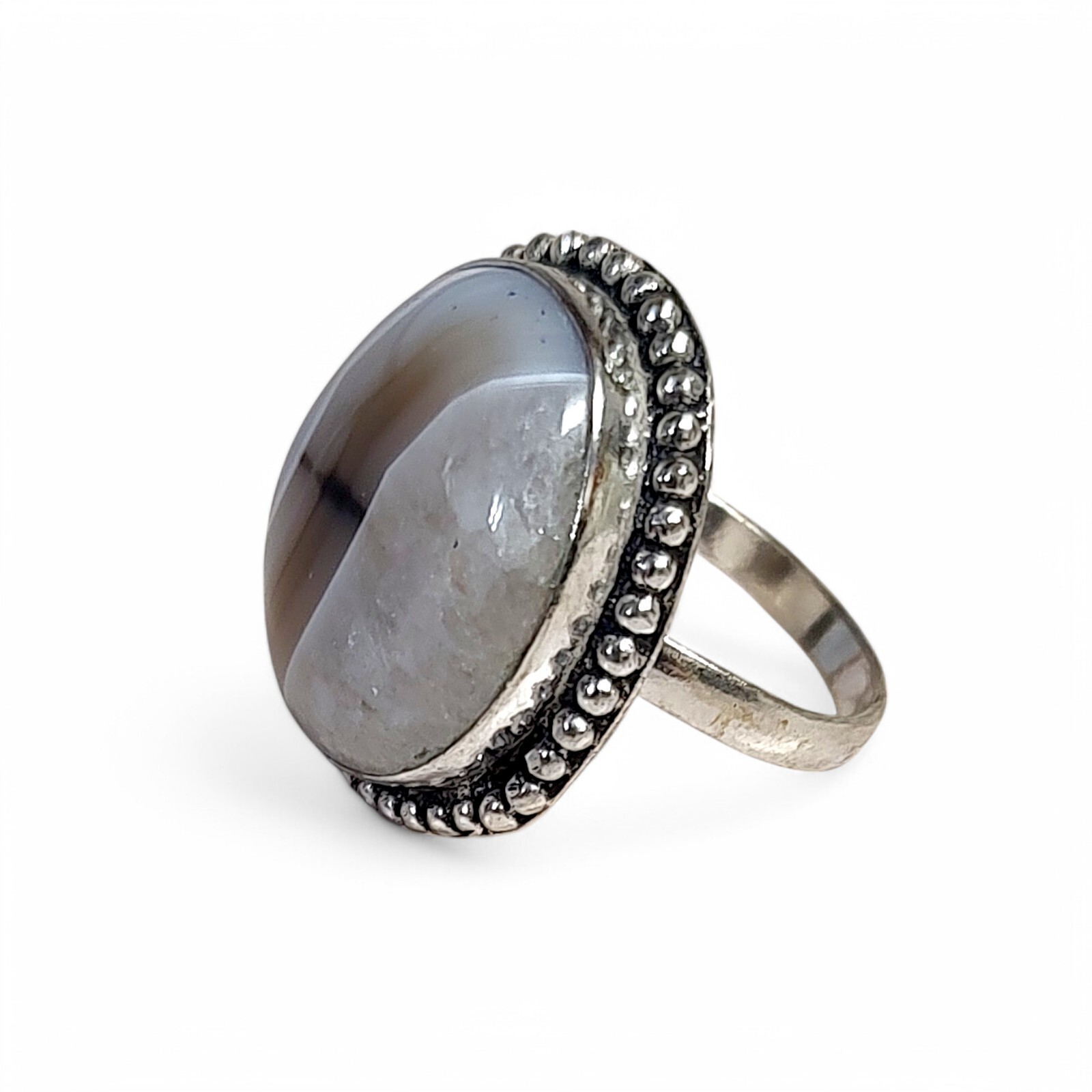 как выглядит Ladys Orange Banded Agate Ring Silver Tone Size 8 фото