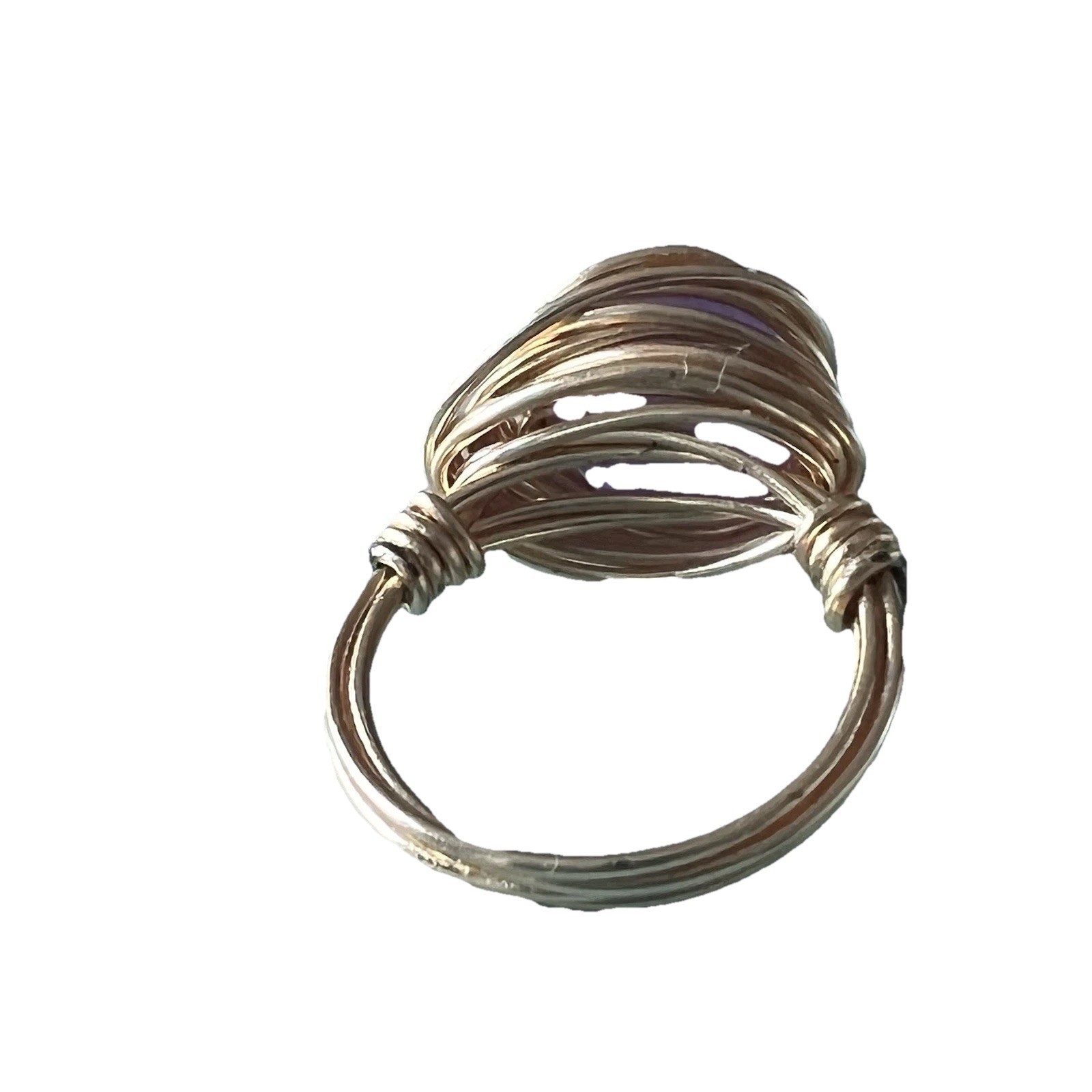 как выглядит Handmade Copper Wire Wrap Amethyst Bead Ring Size 6 фото
