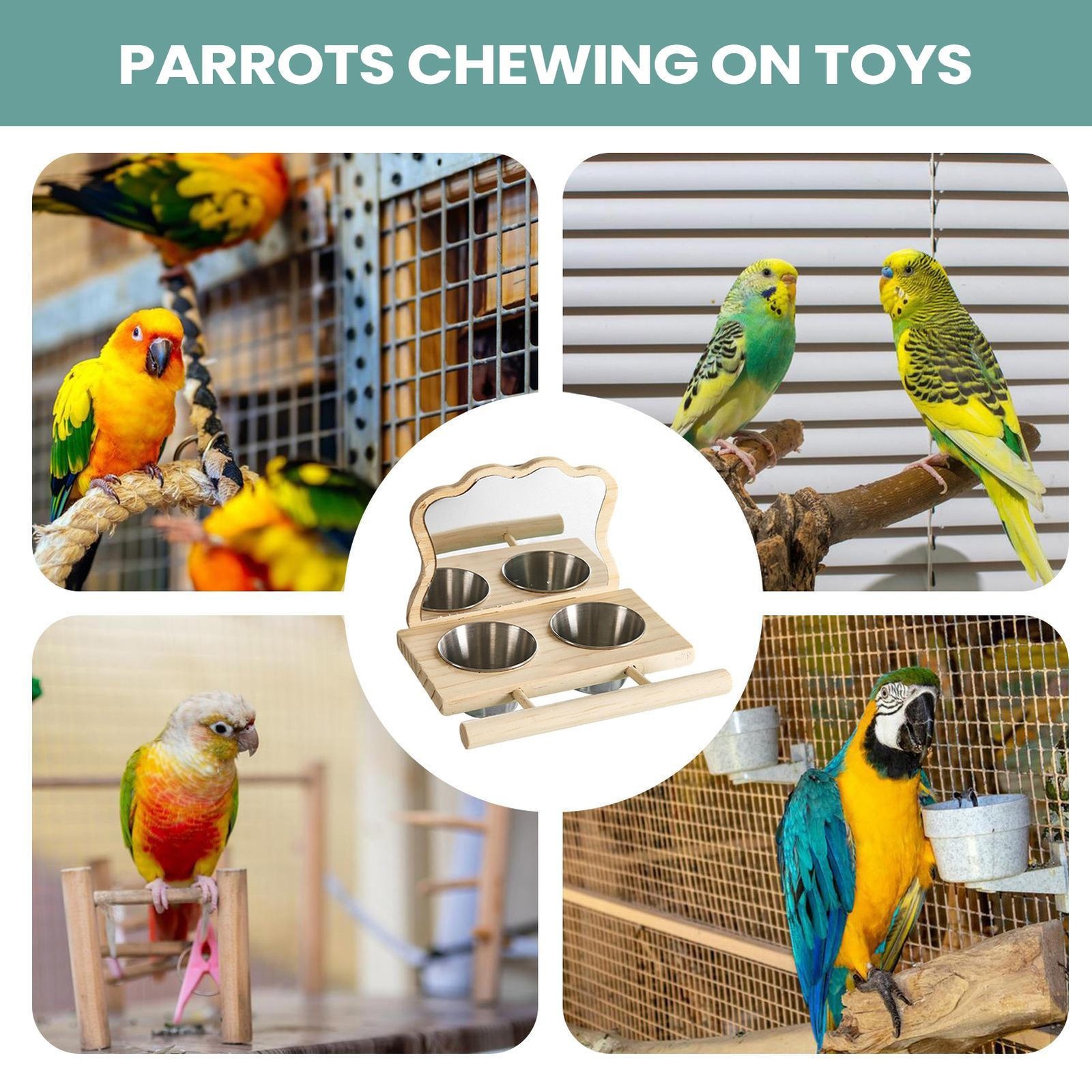 Bird Perch with Feeder Cage Accessories Bird Play Toy Parakeet Food Feeder
