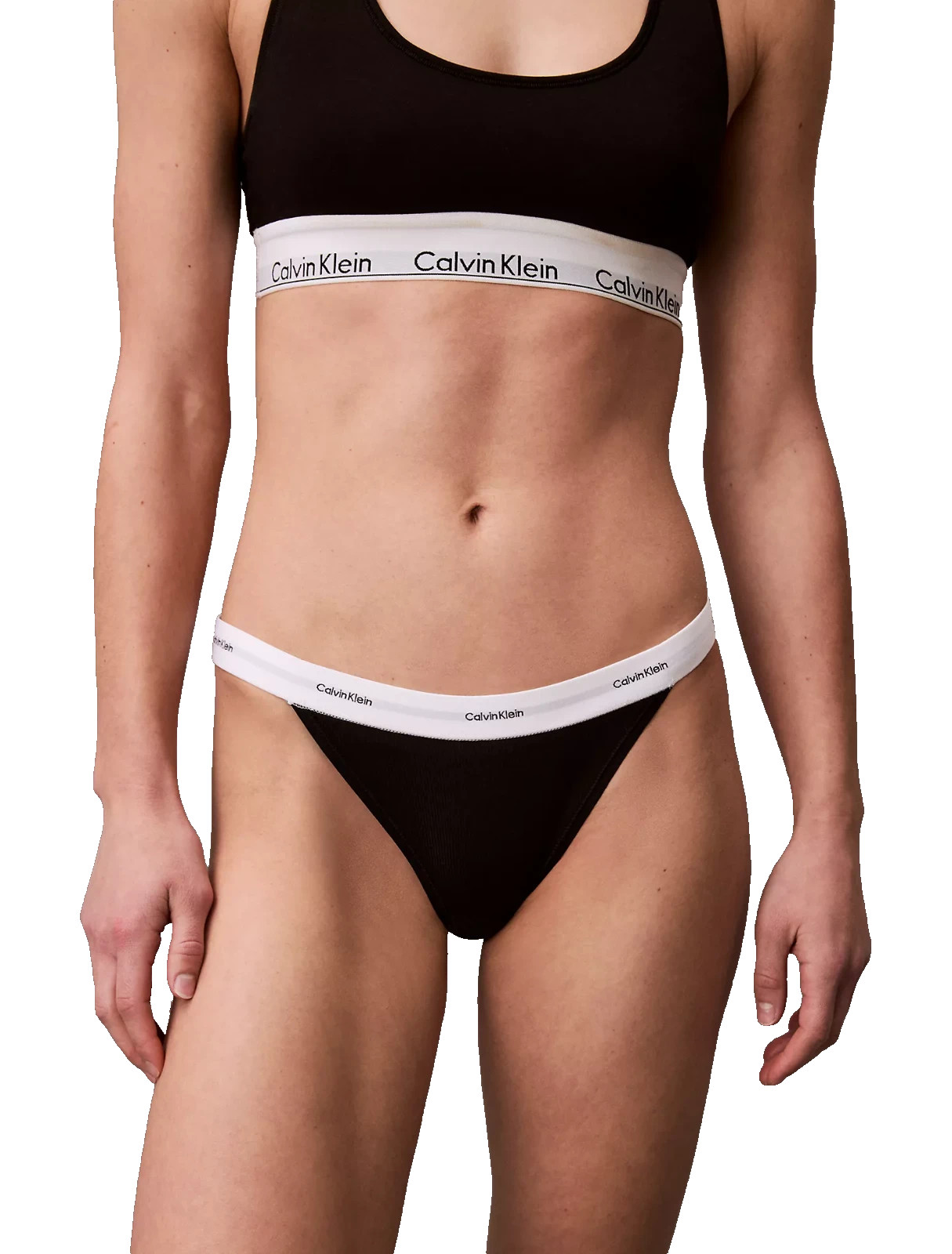 как выглядит Calvin Klein Womens MEDIUM Cotton Stretch Rib String Bikini QD5265-001 фото