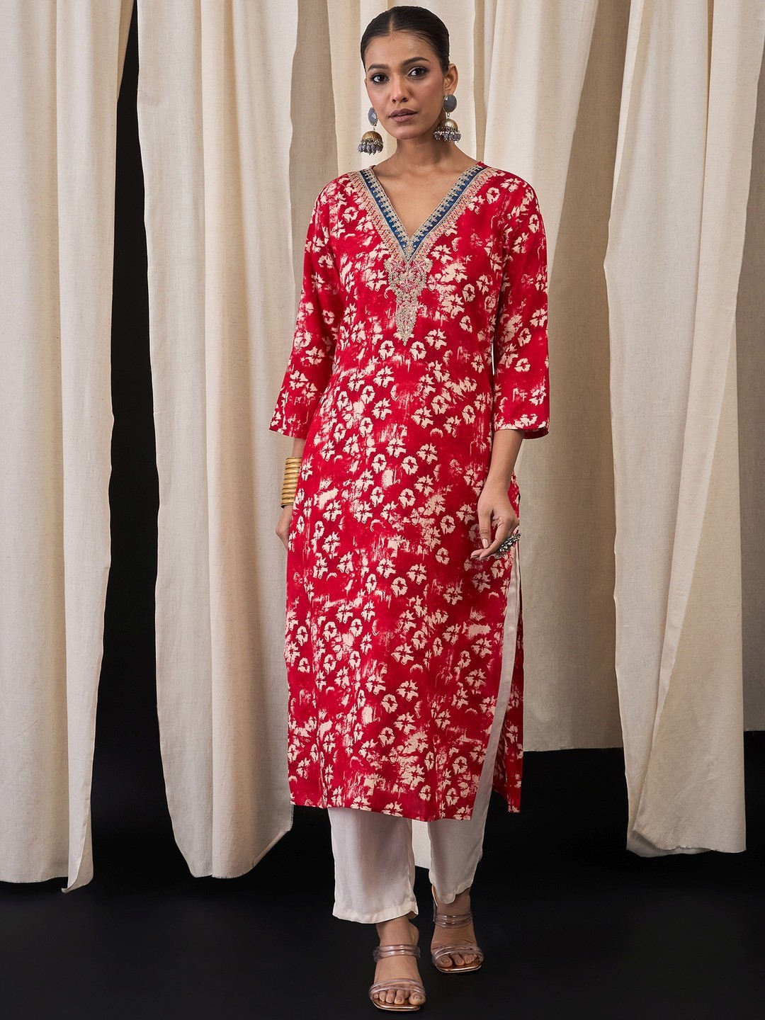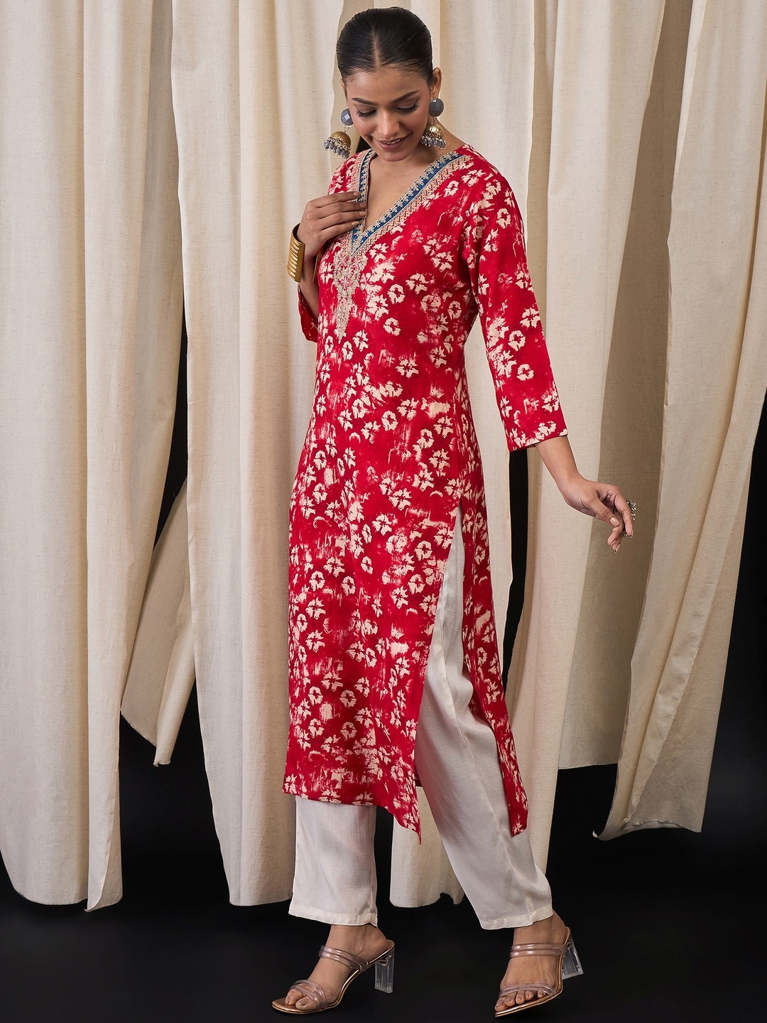 как выглядит Indian Women Rayon Pink Embroidered Floral Printed Kurta Kurti Top Tunic Dress фото