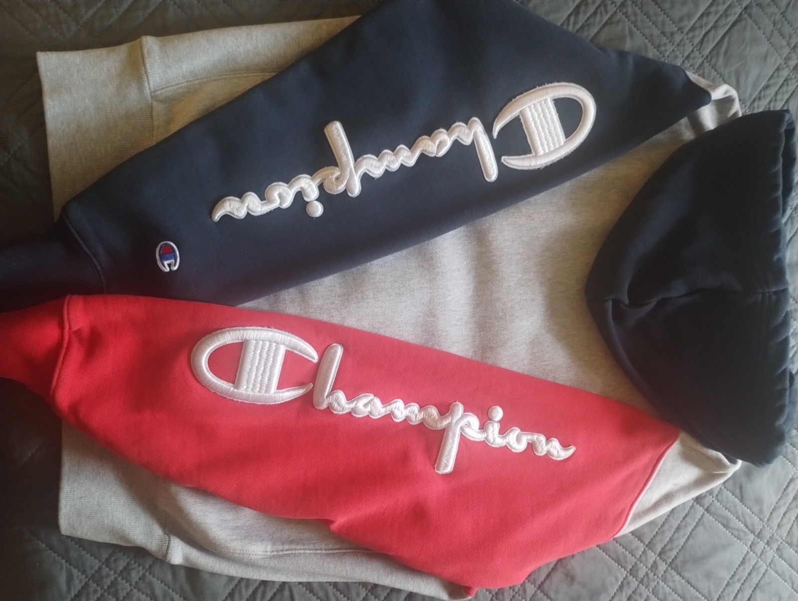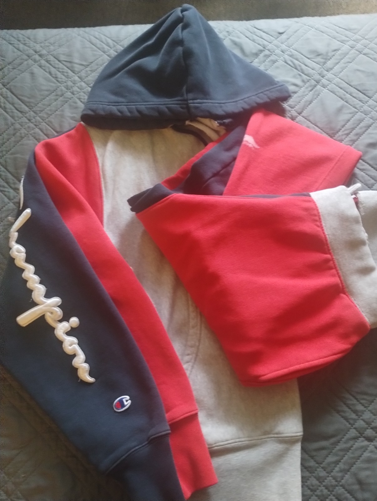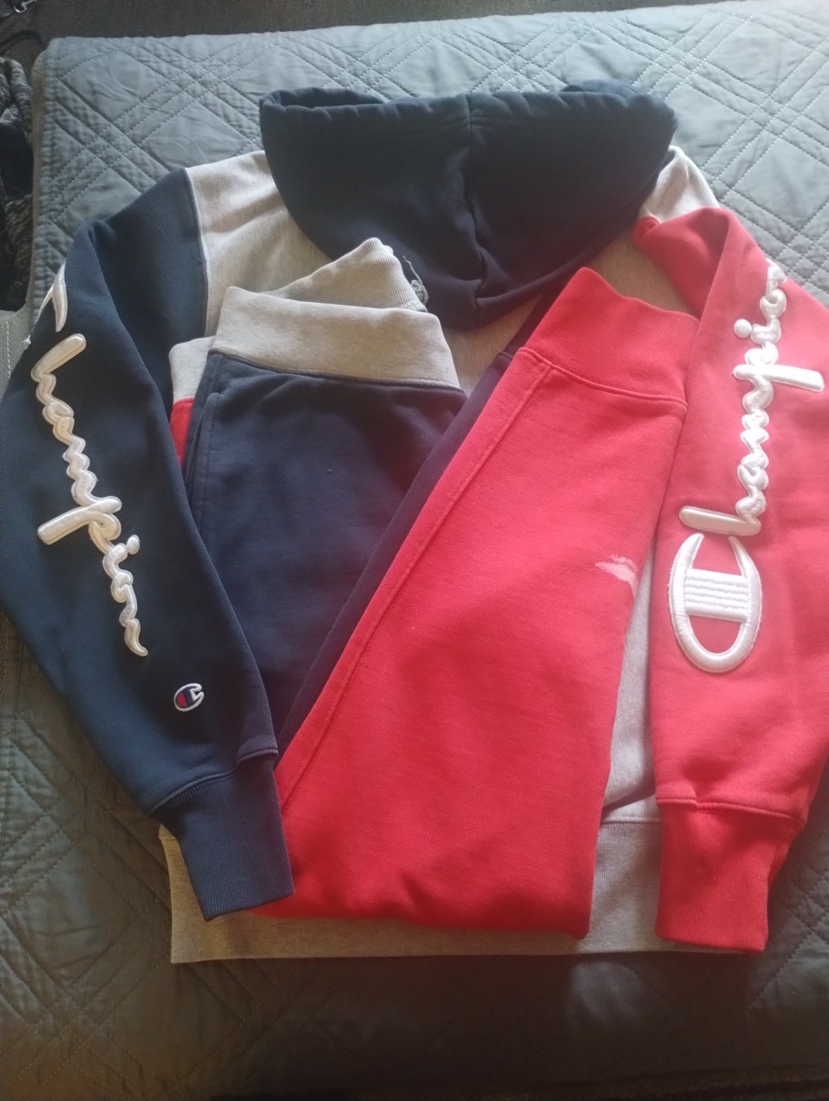 как выглядит Champion Sweat Suit Red White and Blue Size Medium Hoodie and Large Joggers Set фото