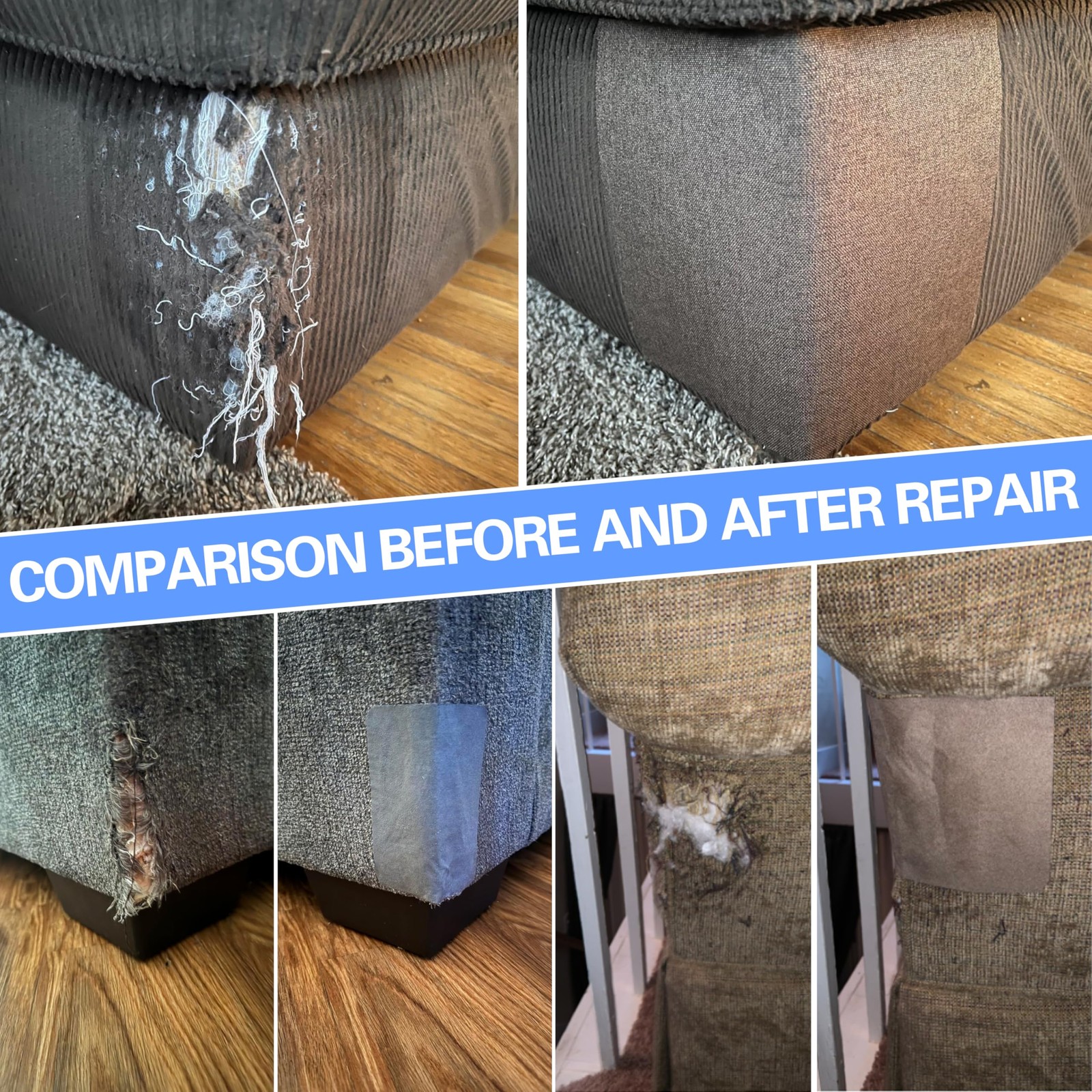 Azobur Sofa Fabric Repair Patch, 6 Piece Microfiber Patches, Velvet, Gray