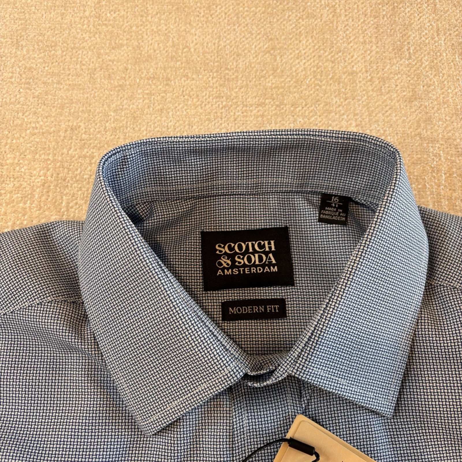 Scotch Soda NWT Men's Stretch Modern Fit Button Up Dress Shirt Blue Size 16