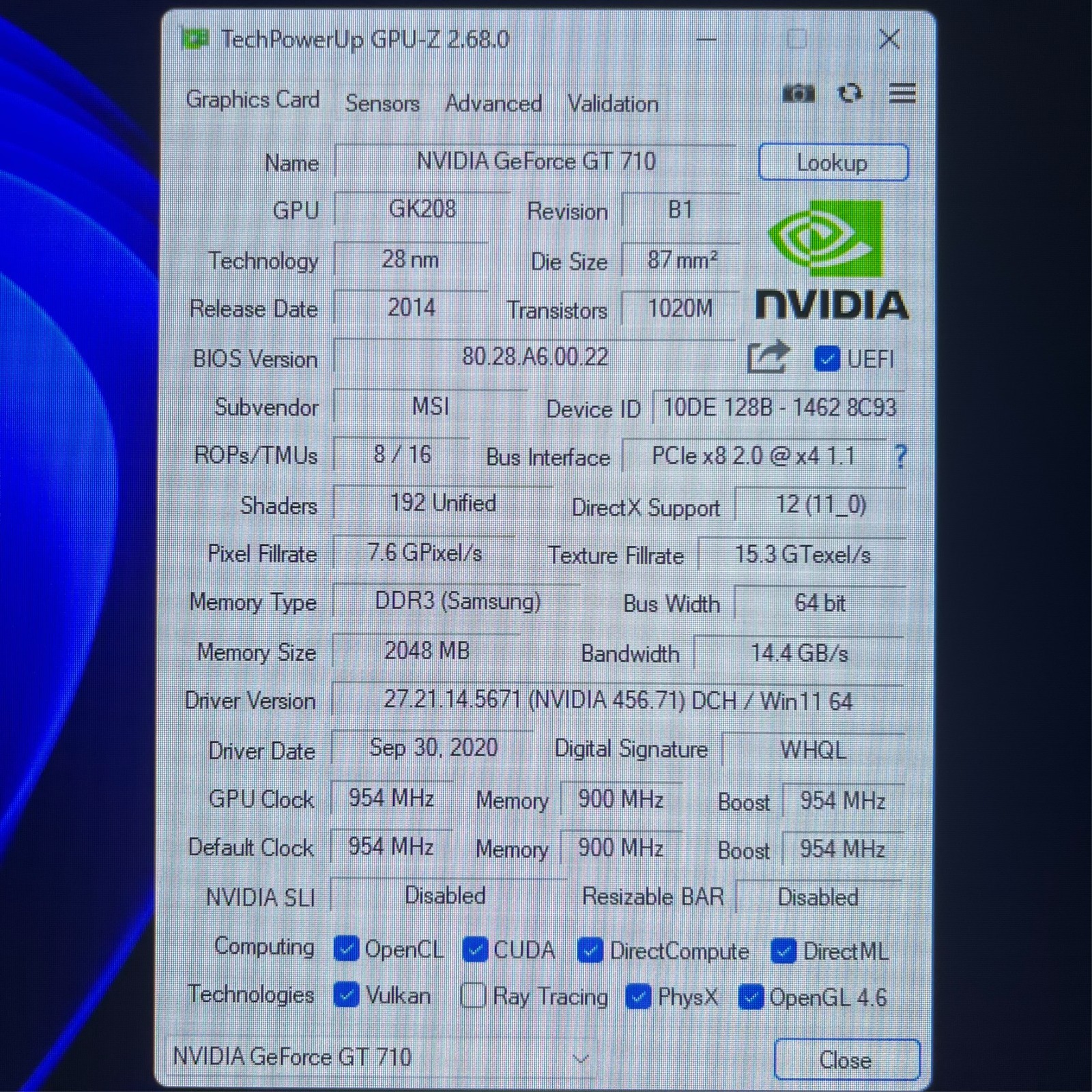 Chipset/GPU Model: NVIDIA GeForce GT 710