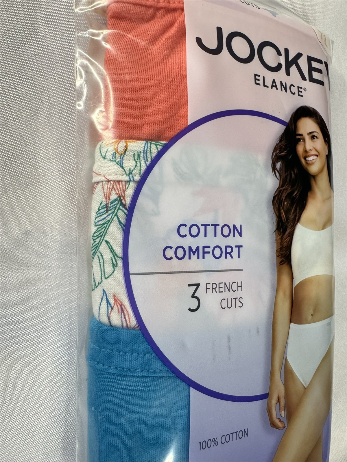 как выглядит Jockey Elance 100 Cotton Womens 7/L Coral/Turquoise French Cut Panty 3-Pack фото