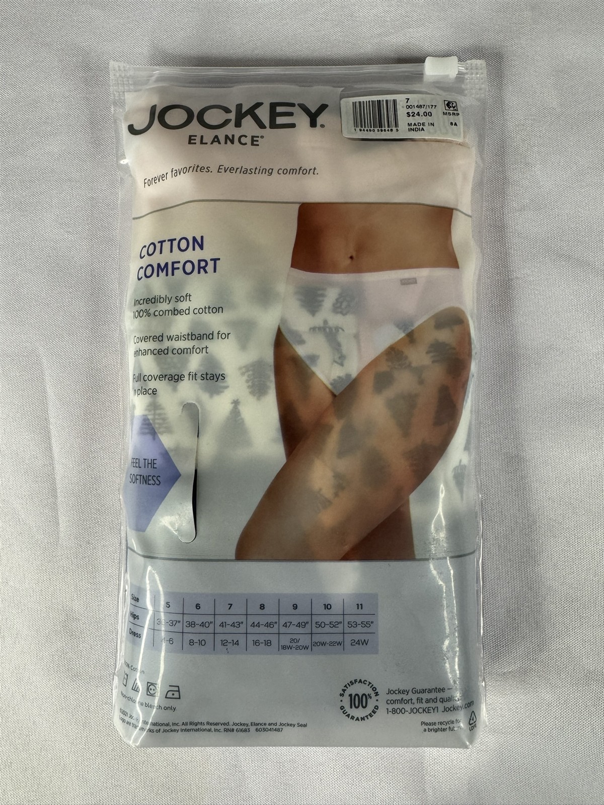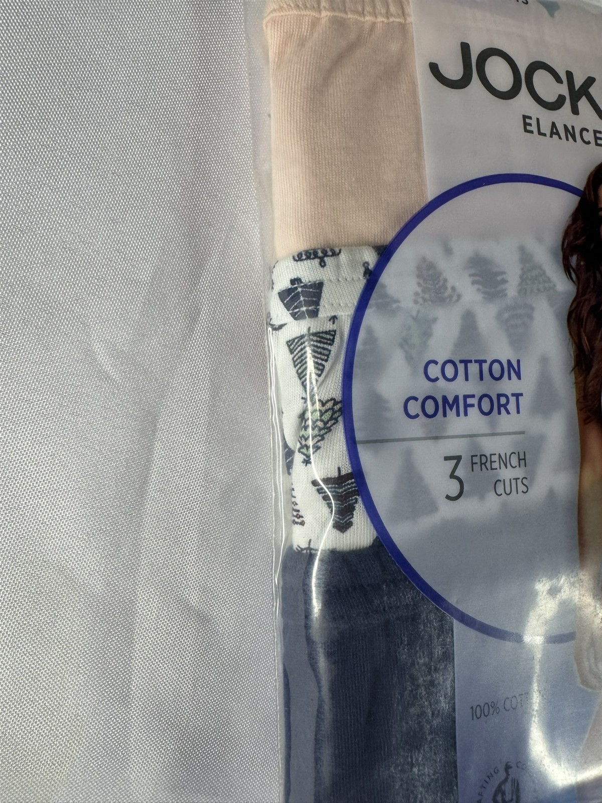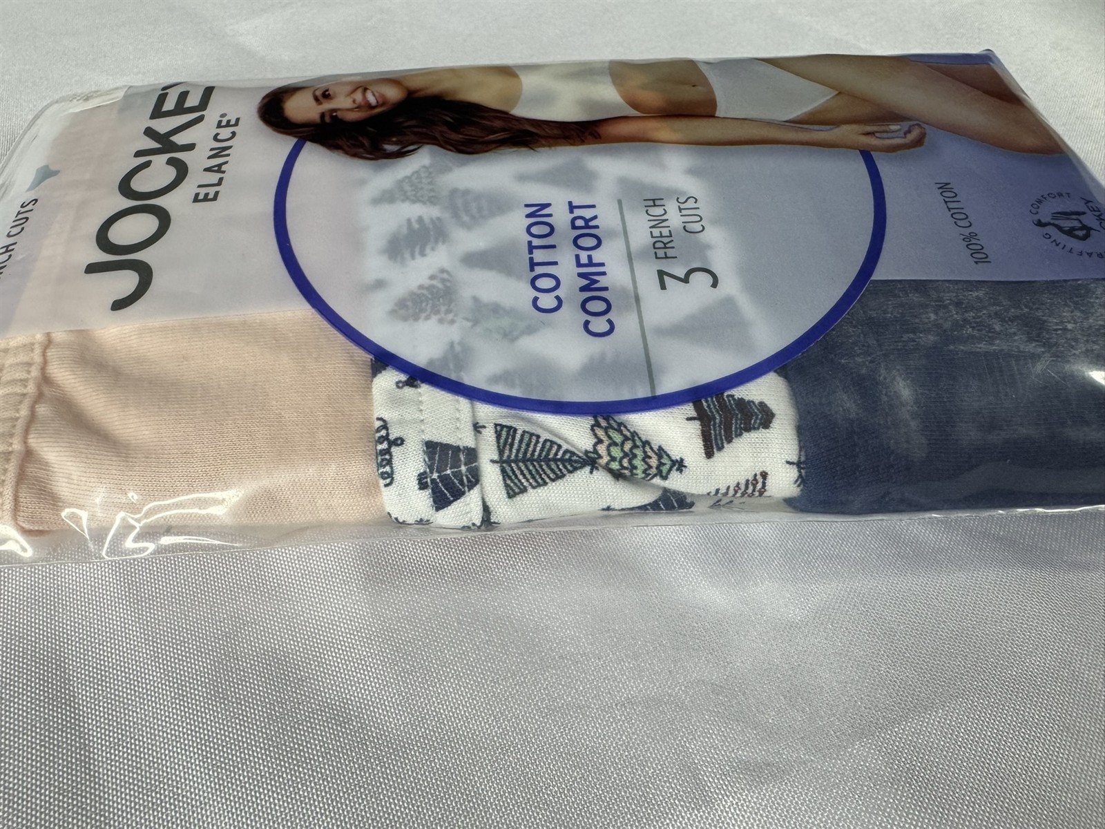 как выглядит Jockey Elance 100 Cotton Womens 7/L Pink/Blue/Pattern French Cut Panty 3-Pack фото