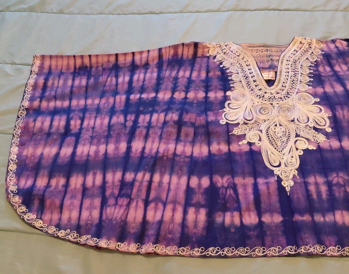 Moroccan Caftan Kaftan Poncho Made In Kenya Tie Dye Embroidery One-Size Purple