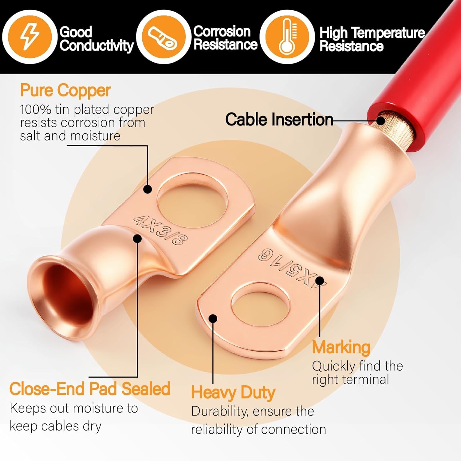 240Pcs Battery Cable Terminals Crimp Connector 4 6 2 1 1/0 2/0 4/0 Gauge 1/4 ...