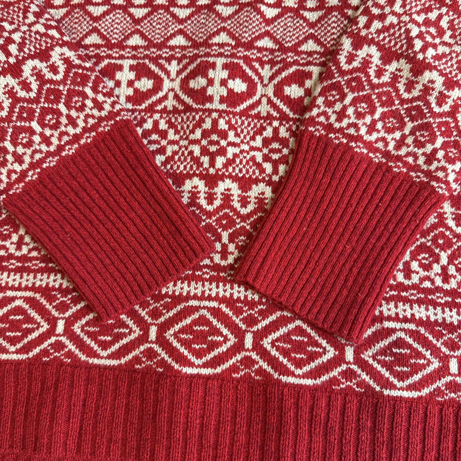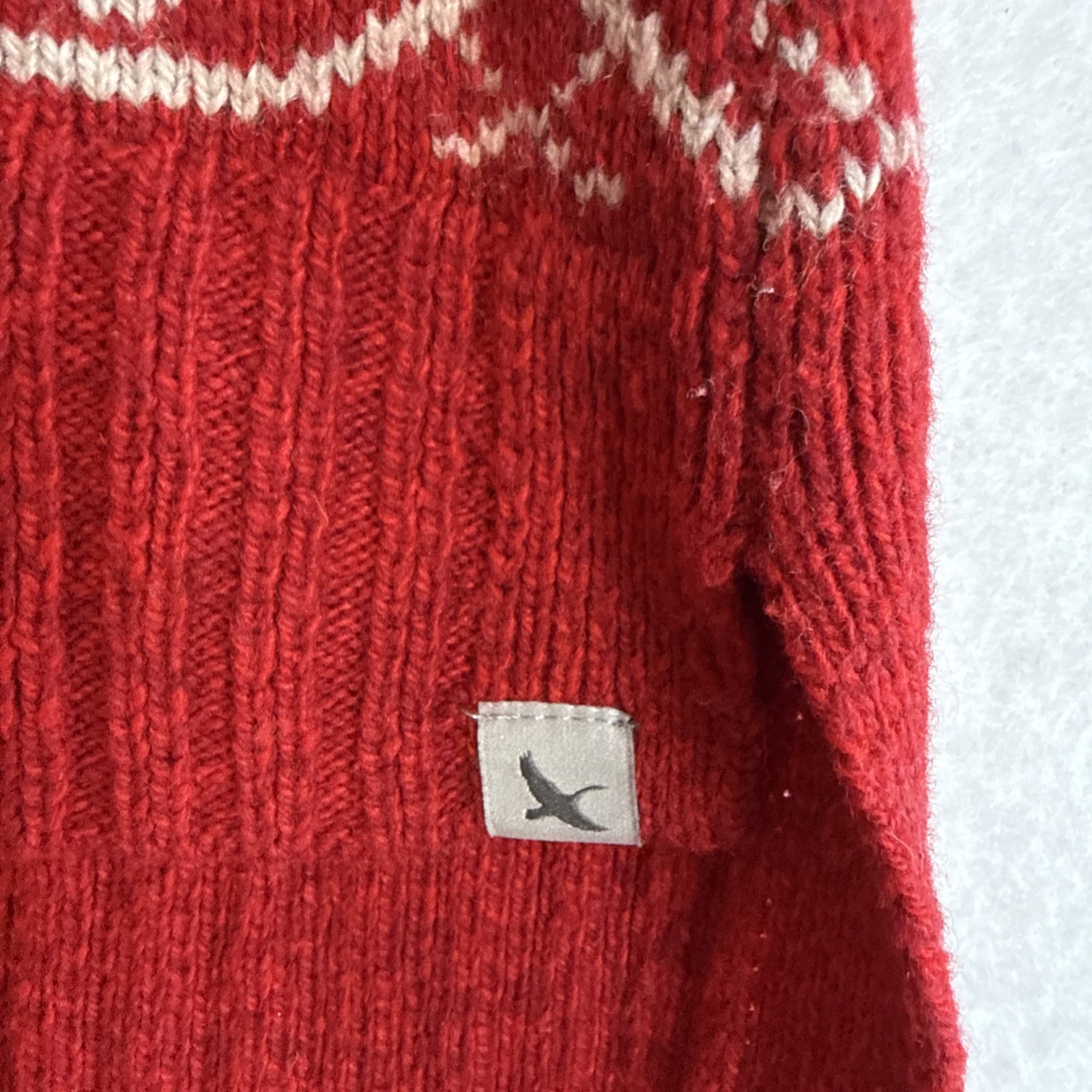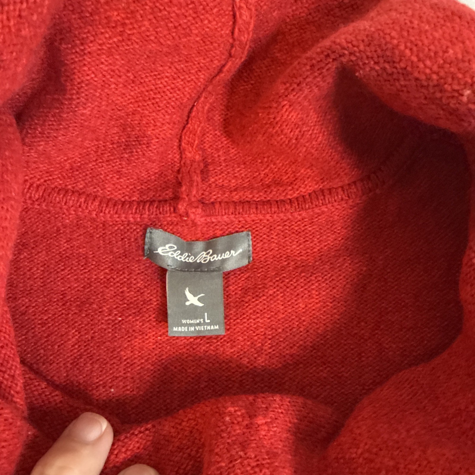 как выглядит Eddie Bauer Sweatee Women Lg Red White Wool Blend Nordic Fair Isle Drawstring фото