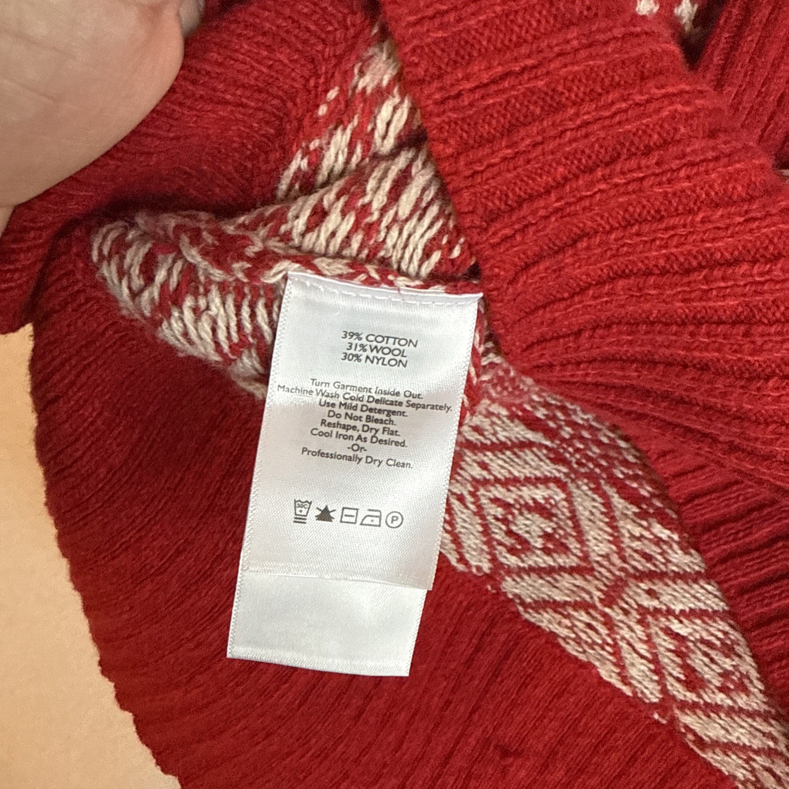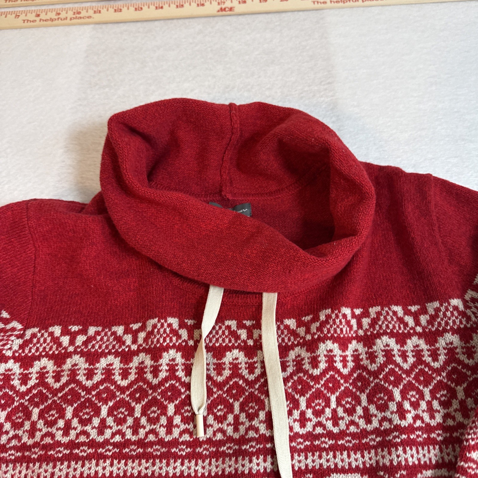 Eddie Bauer Sweatee Women Lg Red White Wool Blend Nordic Fair Isle Drawstring