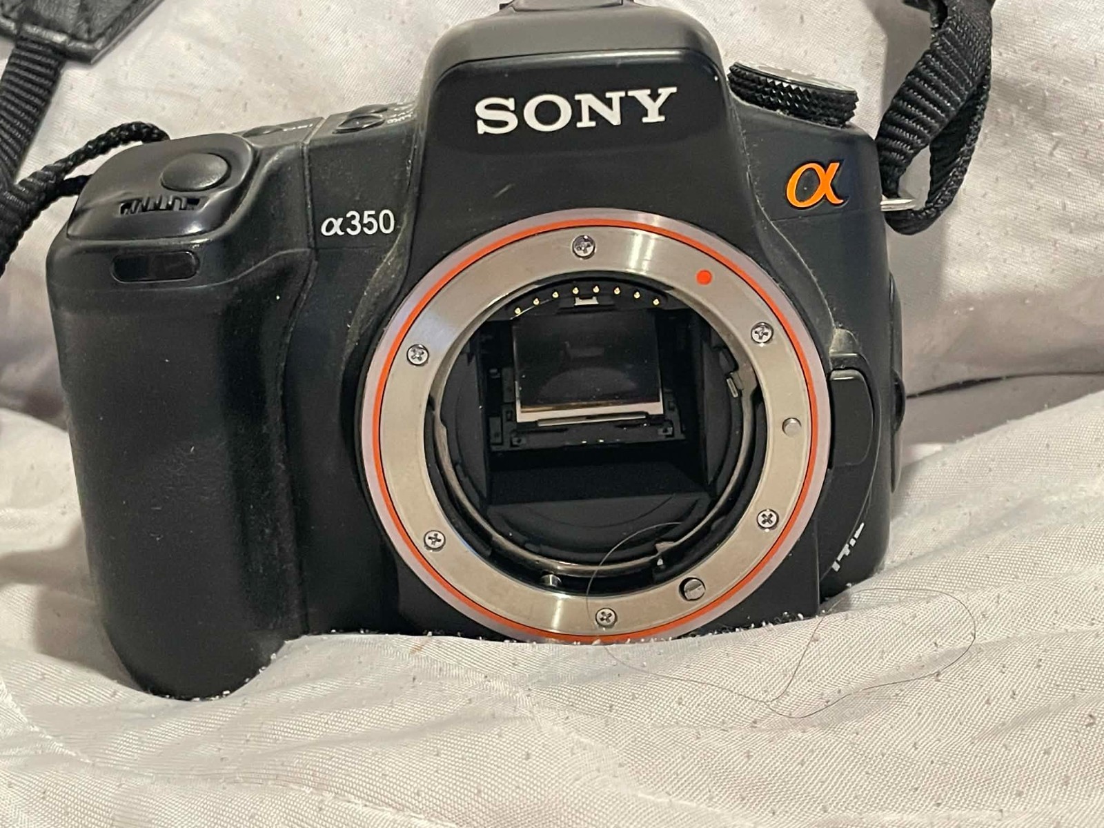 Sony 350 DSLR Camera Body. SCREEN IS PARTIALLY BLACK. BUT WORKS. SEE PICS.