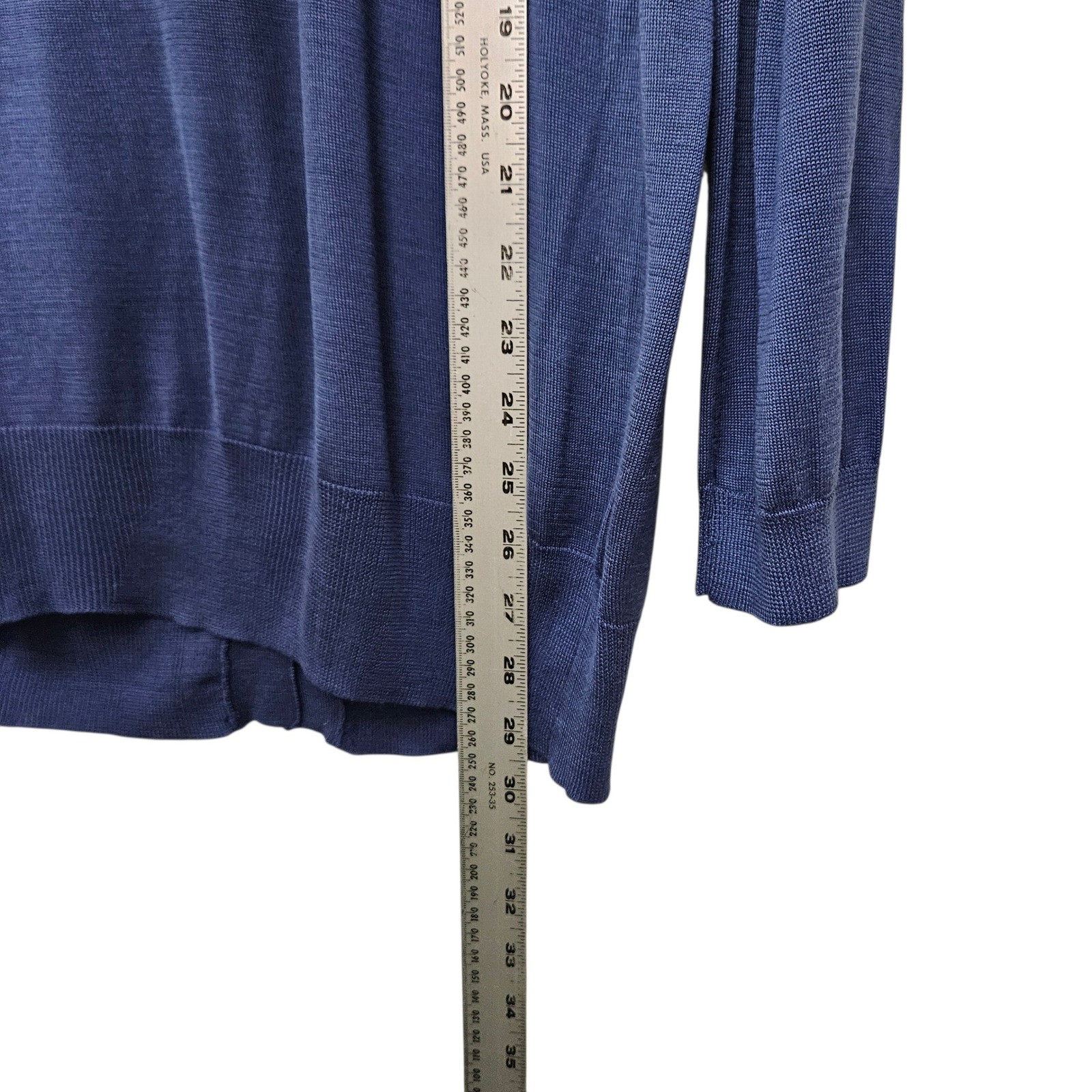 Angelucci Silk Long Sleeve Button Front V Neck Cardigan Navy Blue Size 48 L