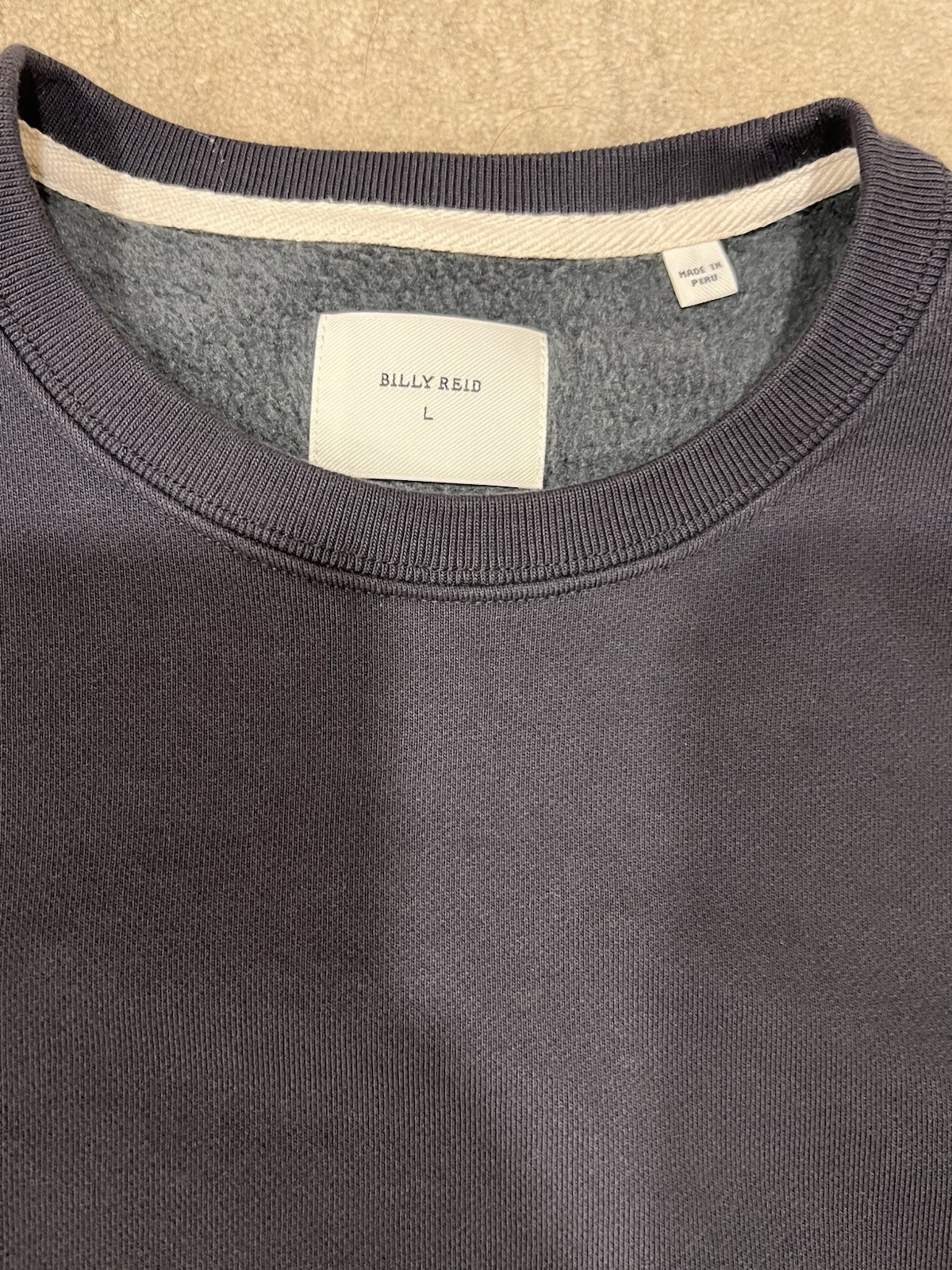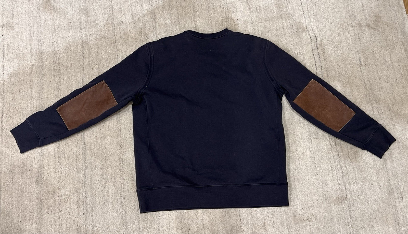 Billy Reid Sweater Men s L Navy Blue Crewneck Leather Elbow Patches