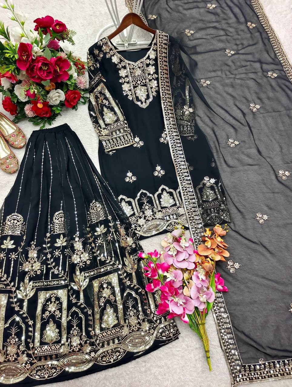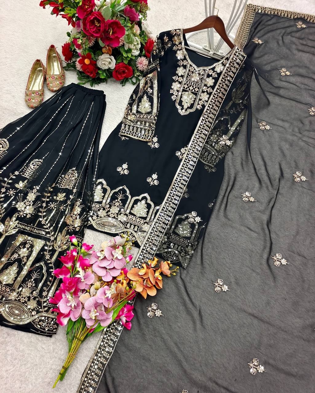 Exclusive Faux Georgette Black Top Palazzo With Dupatta For Women Party Wear