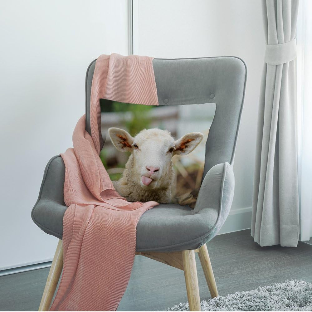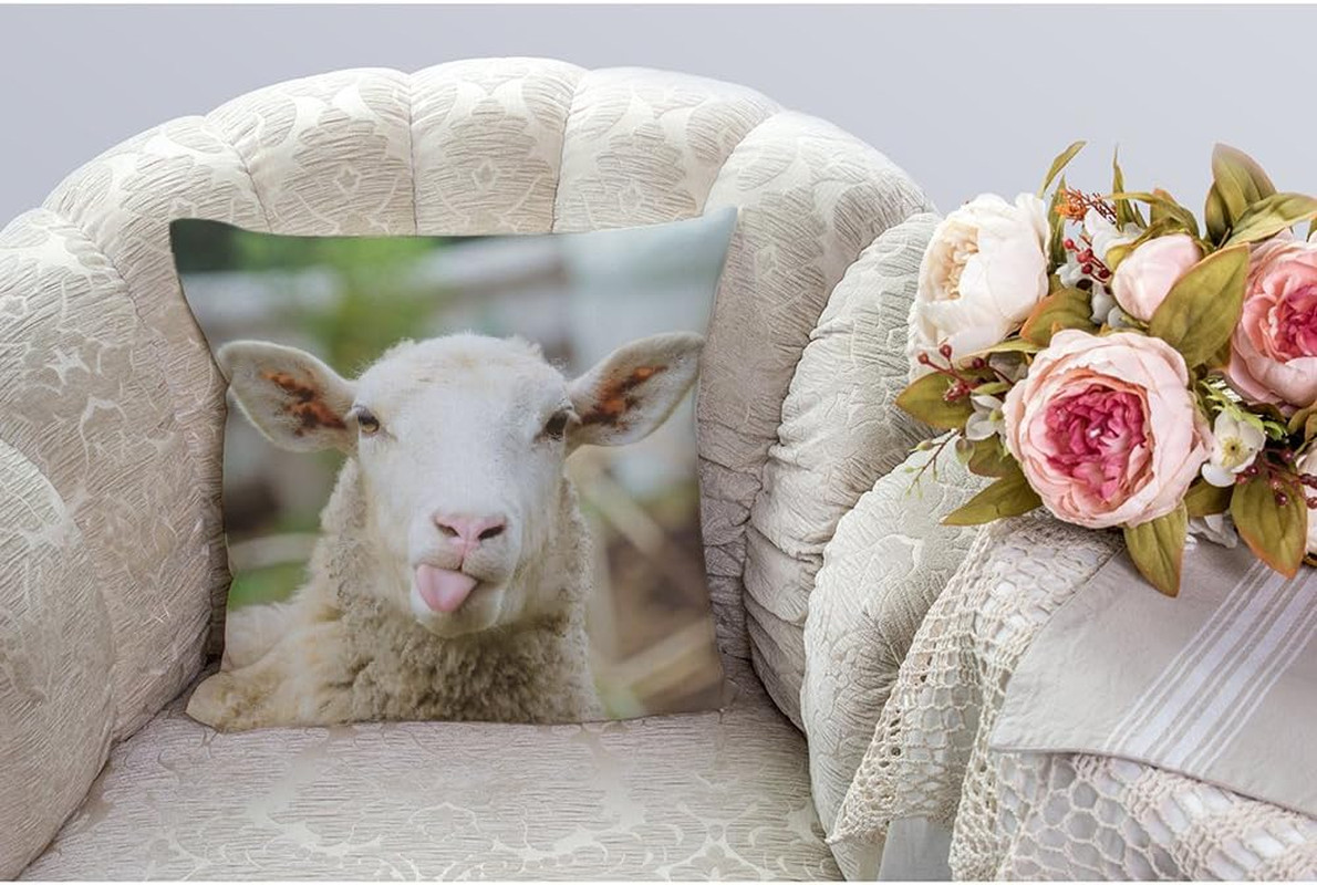 Sheep Pillow Cover, Decorative Throw Pillow with Funny Sheep Portrait Showing To