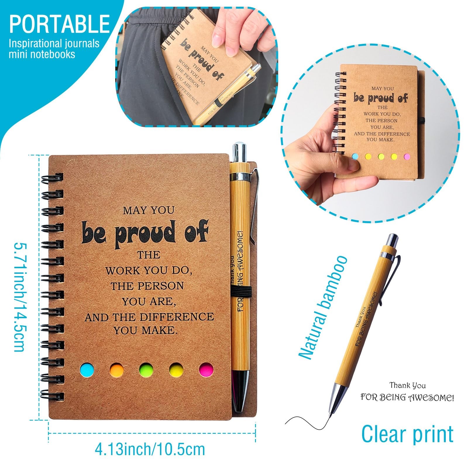 4 Set Spiral Notebook with Pen,60 Sheets,Office/School Supplies,5.7 x 4 SET