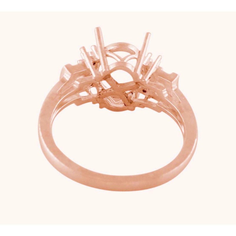 925 Sterling Silver 10mm Oval Semi Mount Three-Stone Ring For Engagement Ring
