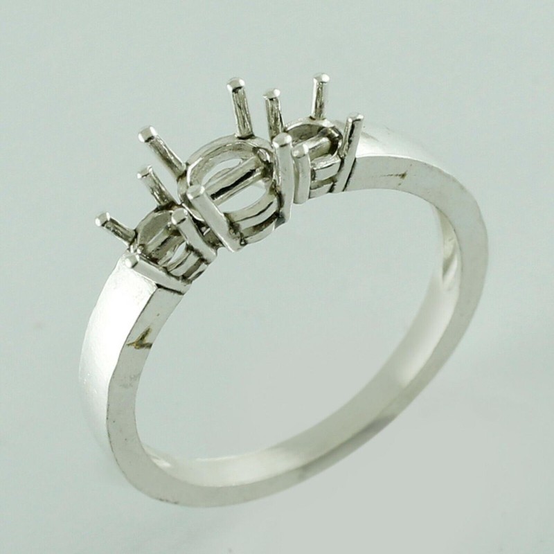 925 Sterling Silver 3.5mm Round Semi Mount Three-Stone Ring For Wedding Ring