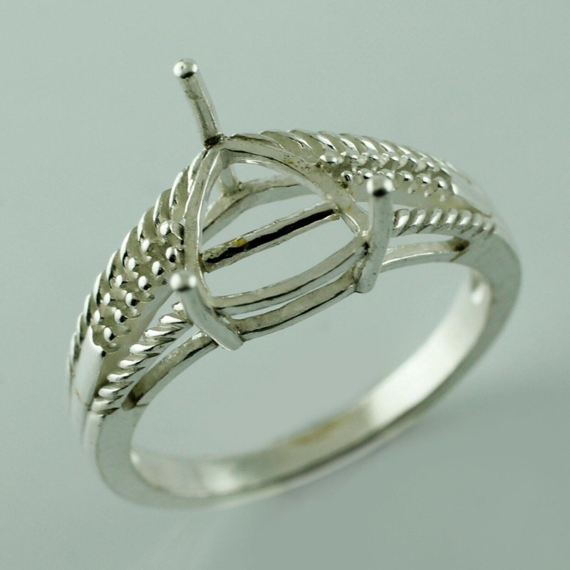 925 Sterling Silver 8mm Trillion Semi Mount Solitaire Ring For Wedding Ring