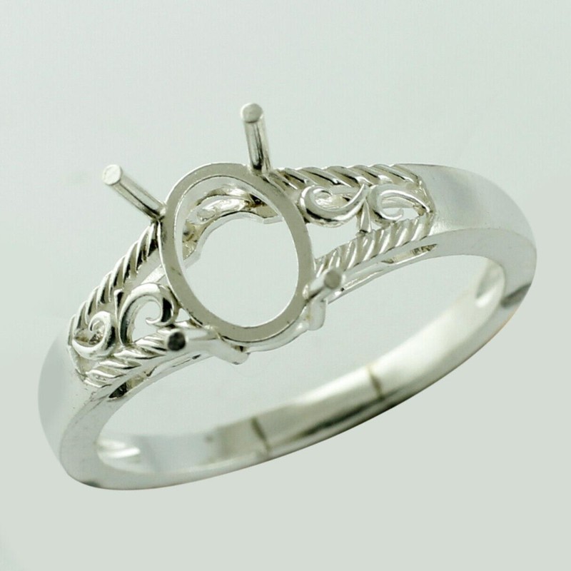 925 Sterling Silver 6x8mm Oval Semi Mount Solitaire Ring For Wedding Ring