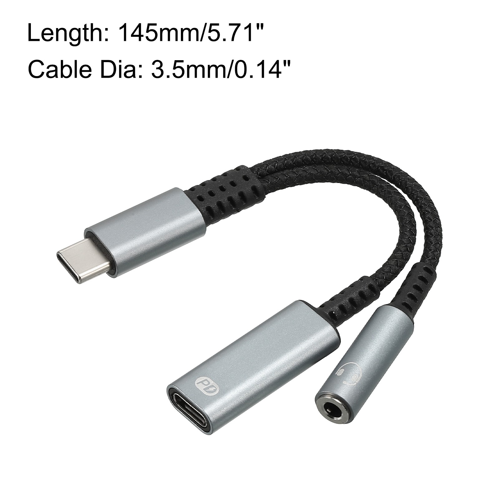 как выглядит USB C to 3.5mm Headphone and Type C 60W PD Fast Charging Adapter 2 in 1 Grey фото
