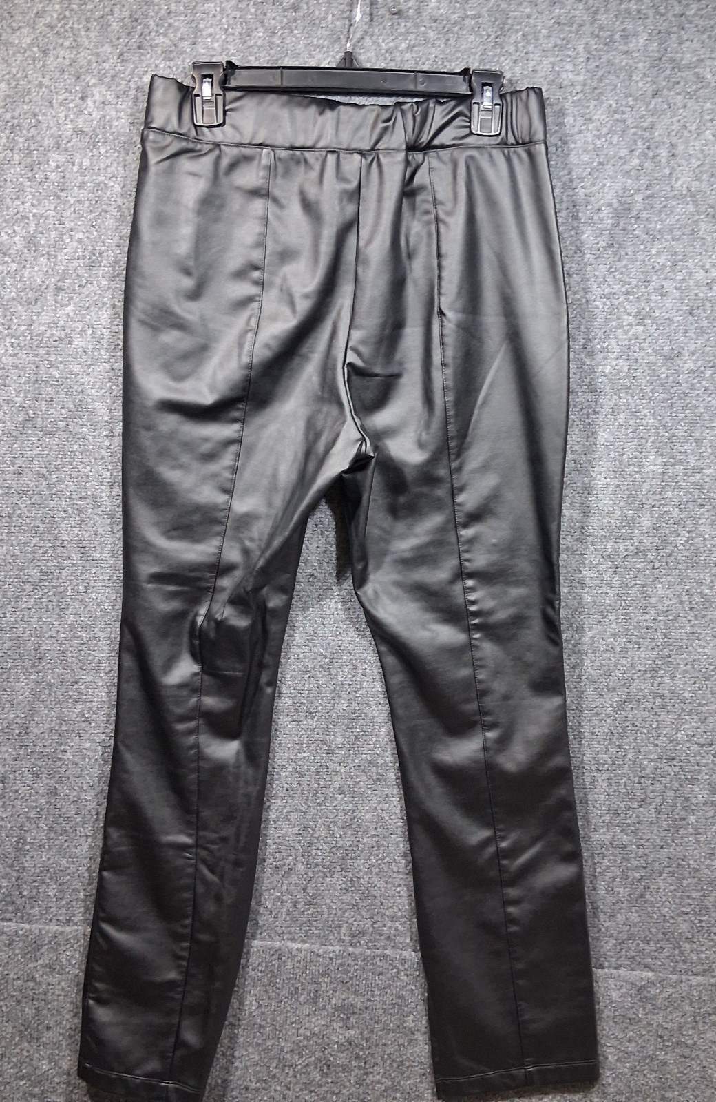 как выглядит A New Day Pants Womens Size L Black Faux Leather Elastic Waist Open Inside Ankl фото