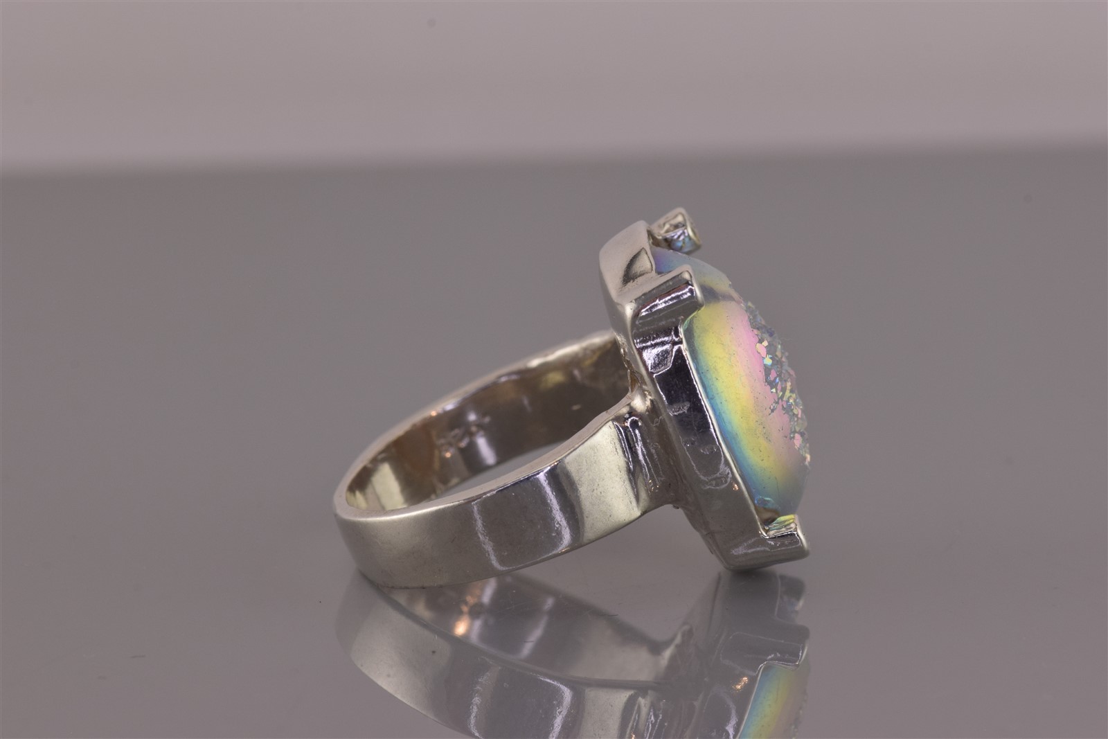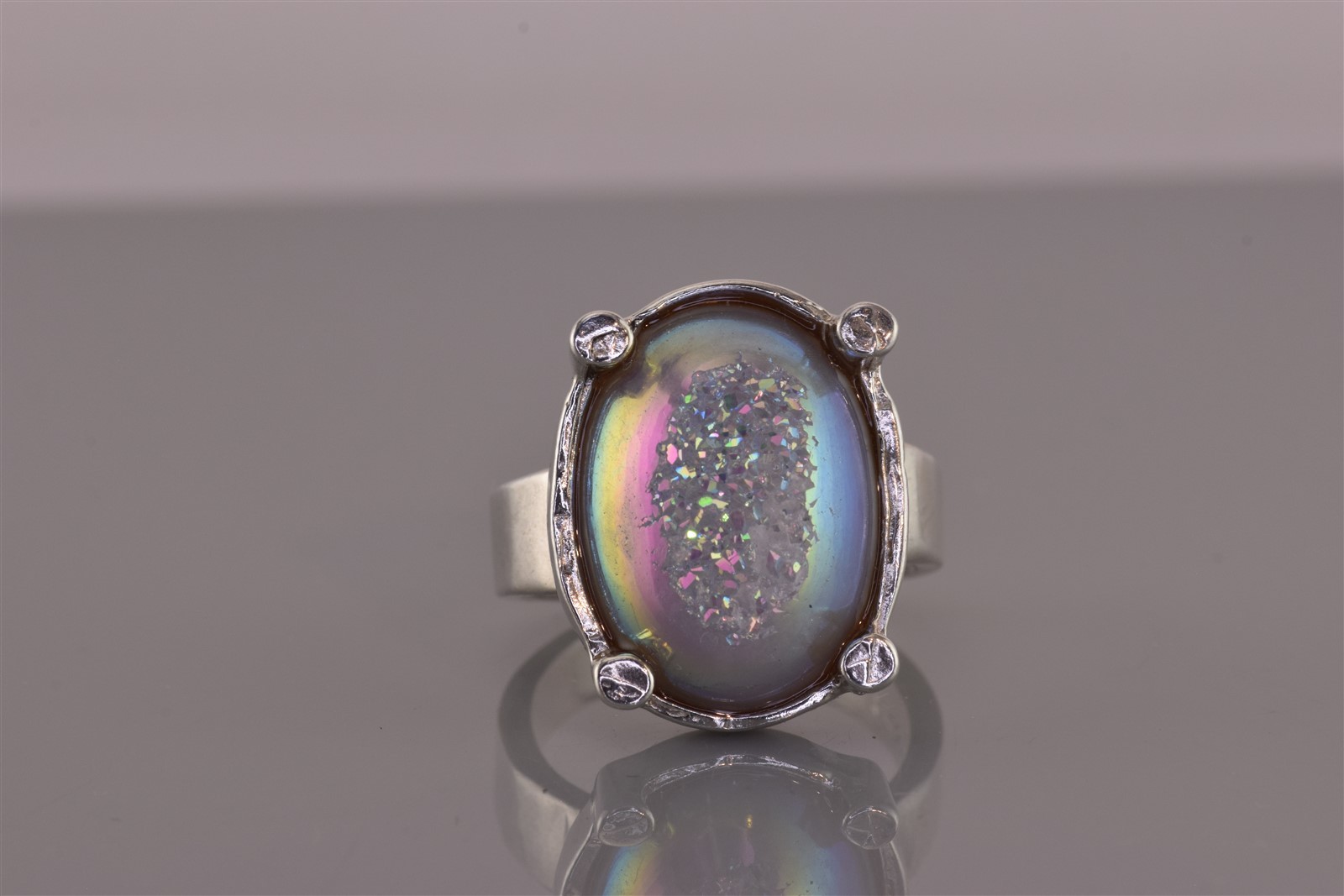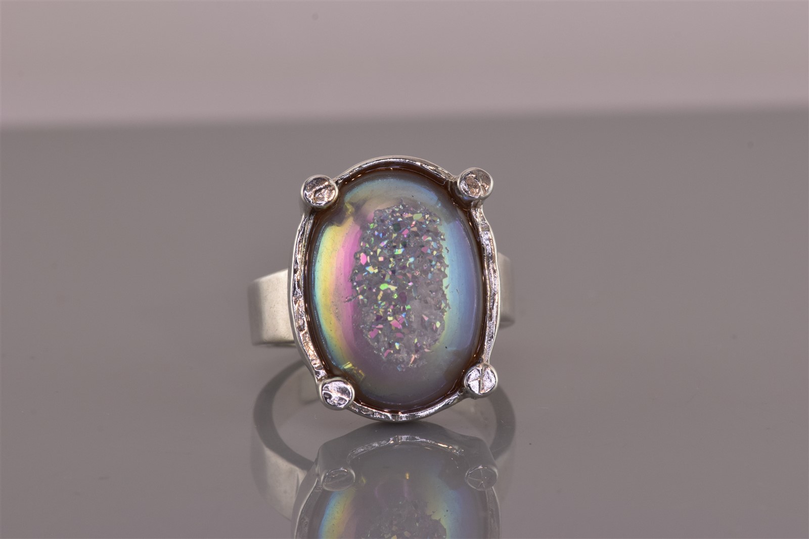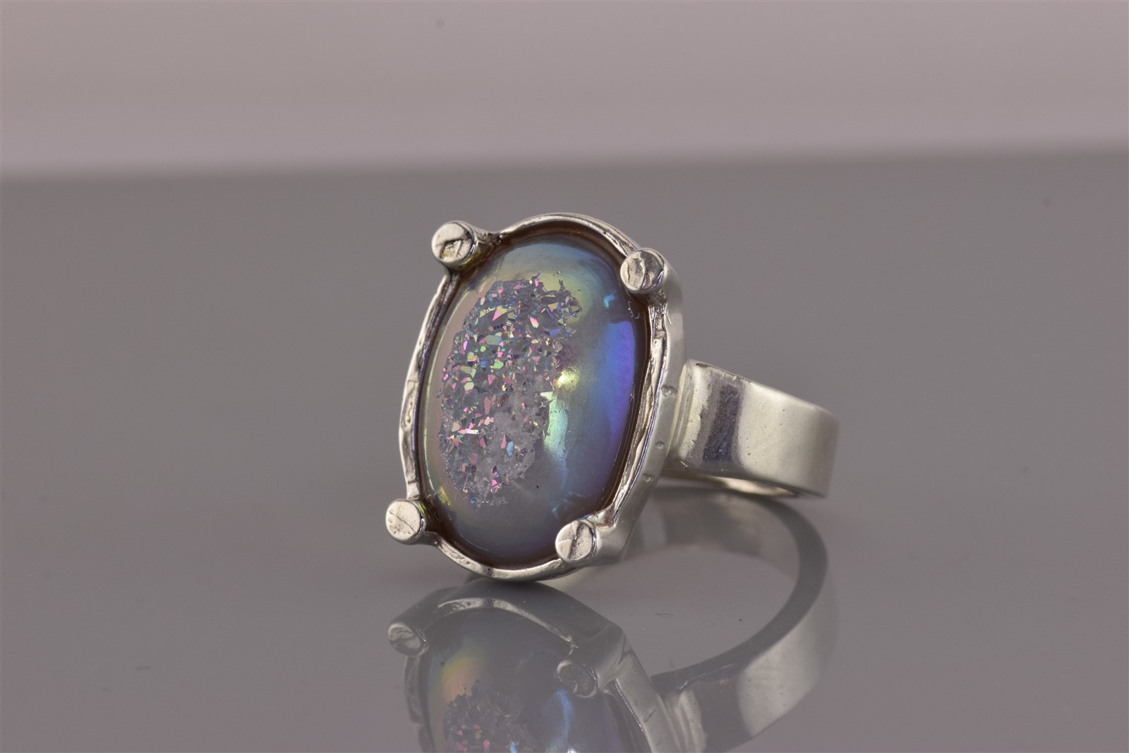 как выглядит Sterling Silver Textured Bezel Gray Quartz Druzy Statement Band Ring 925 Sz: 9 фото