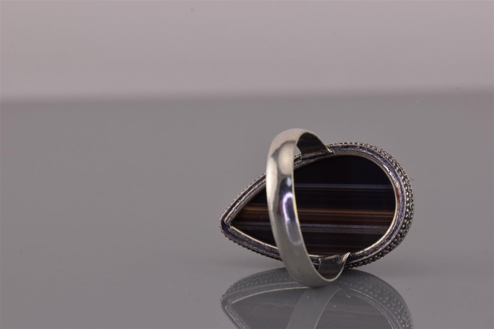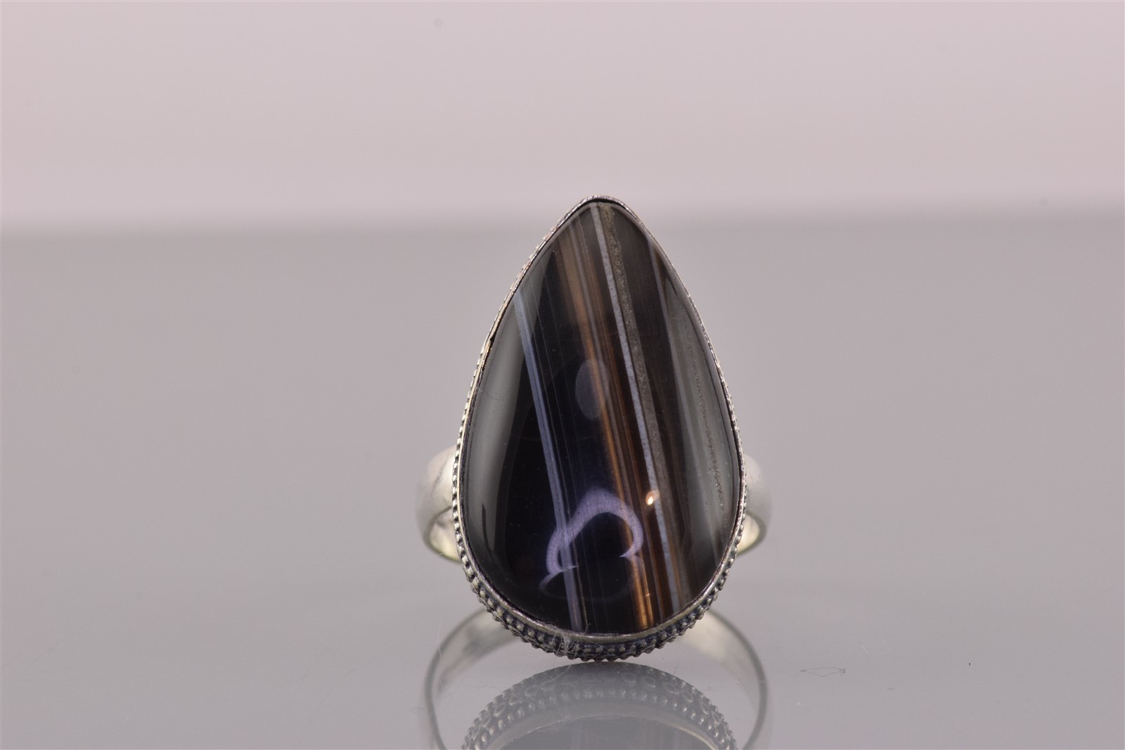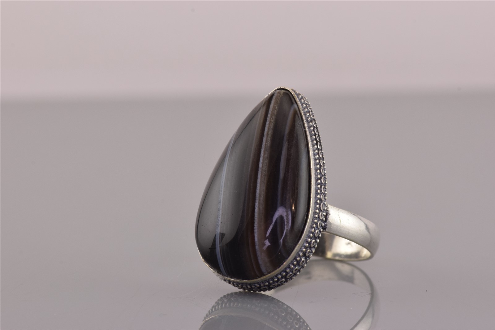 как выглядит Sterling Silver Stripped Black Onyx Teardrop Statement Band Ring 925 Sz: 9 фото