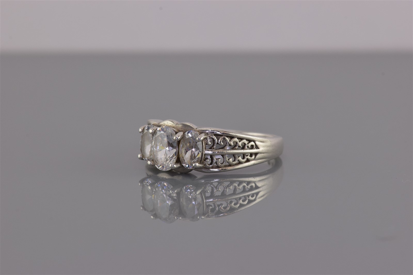 как выглядит Sterling Silver Triple Oval Cubic Zirconia Swirled Openwork Band Ring 925 Sz: 8 фото