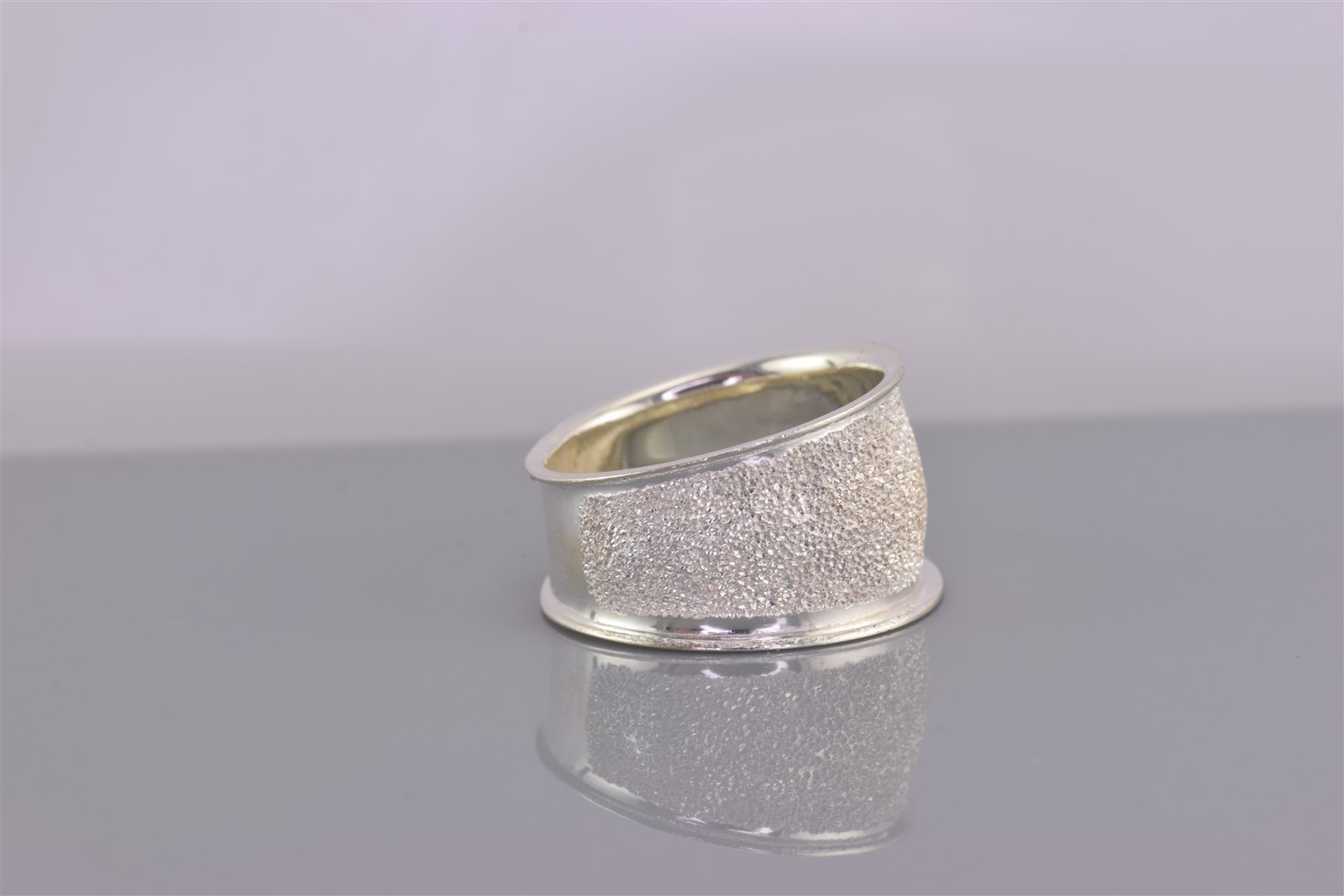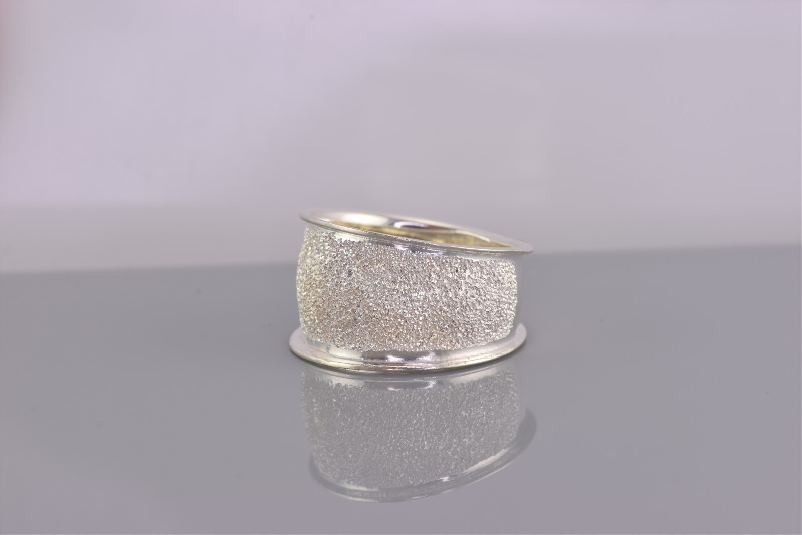 как выглядит Sterling 10mm Rimmed Diamond Dust Textured Band Ring 925 Sz: 7 фото