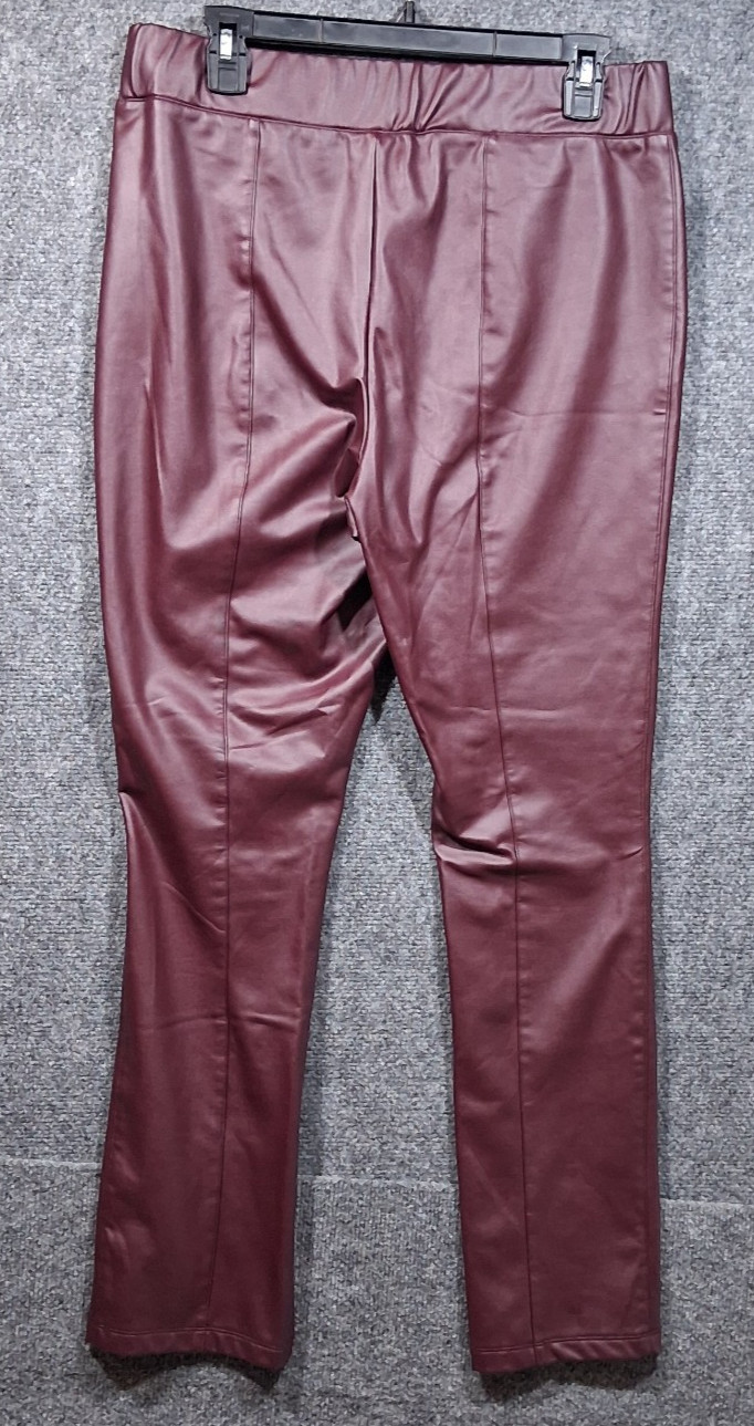 как выглядит A New Day Pants Womens Size Large Burgundy Faux Leather Elastic Waist фото
