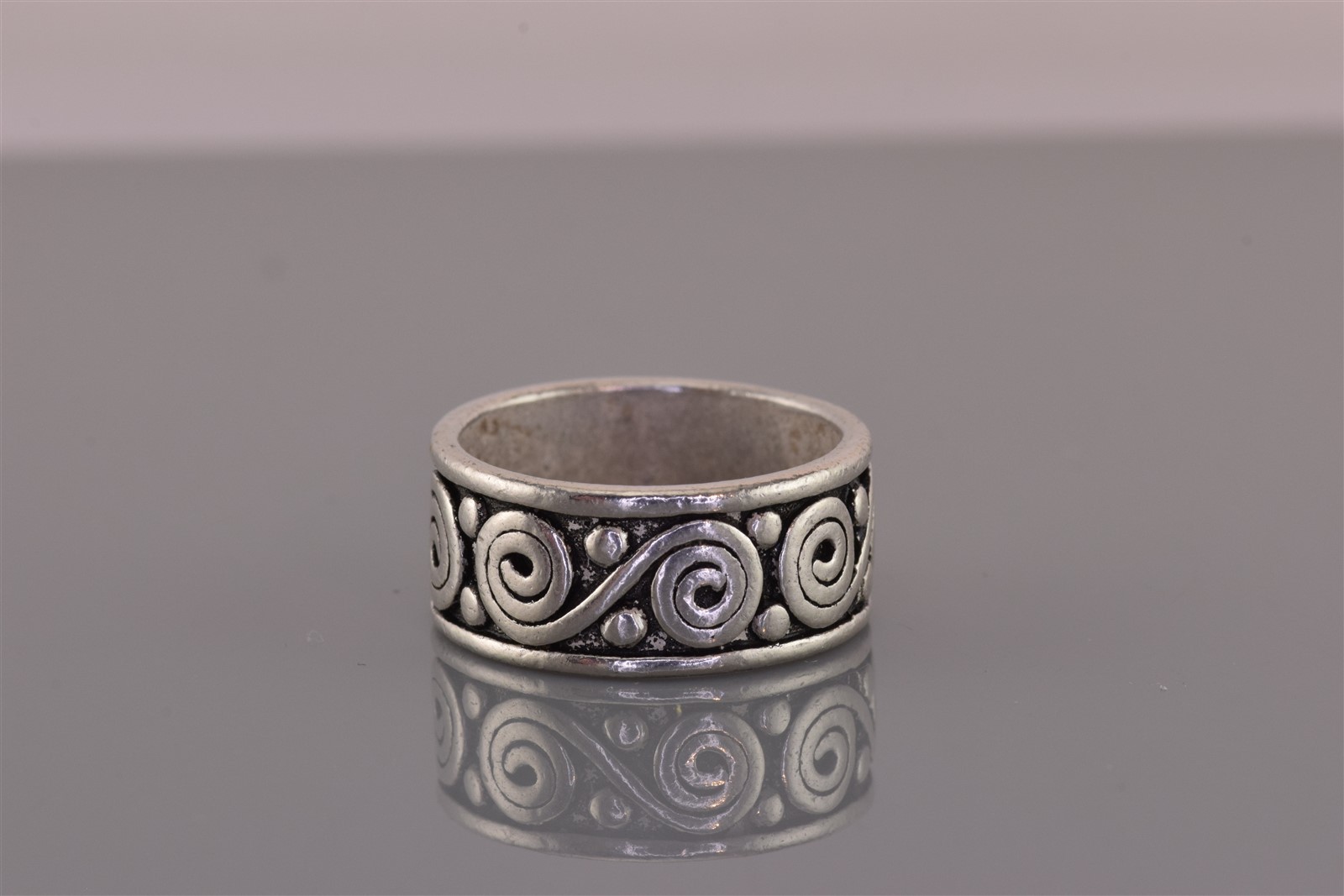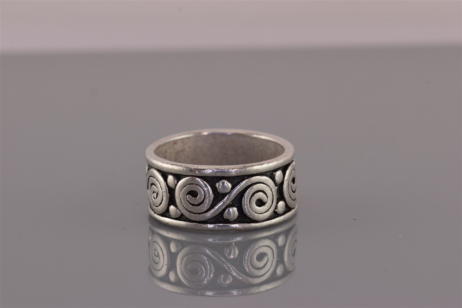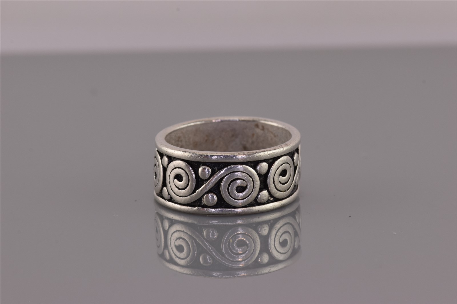как выглядит Sterling Silver 10mm Spiraled Rimmed Eternity Oxidized Band Ring 925 Sz: 9 фото