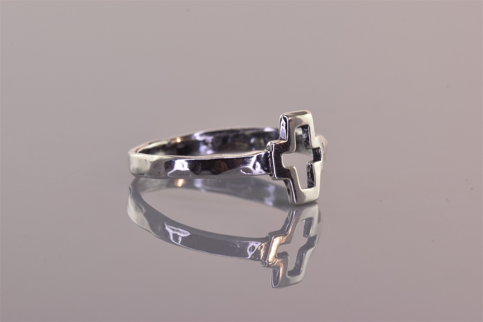 как выглядит Sterling Silver 11mm Openwork Cutout Cross Textured Band Ring 925 Sz: 12 фото