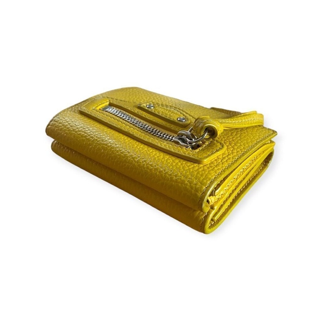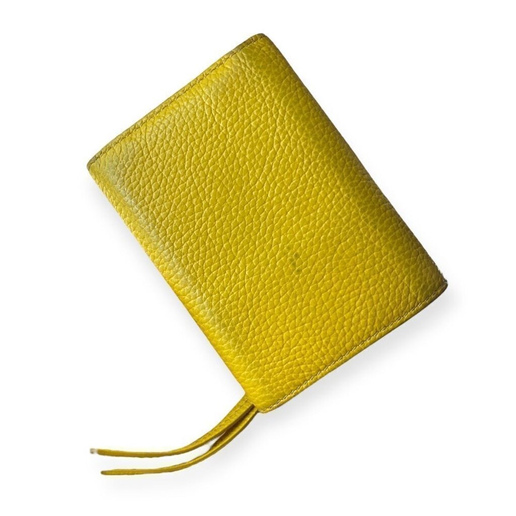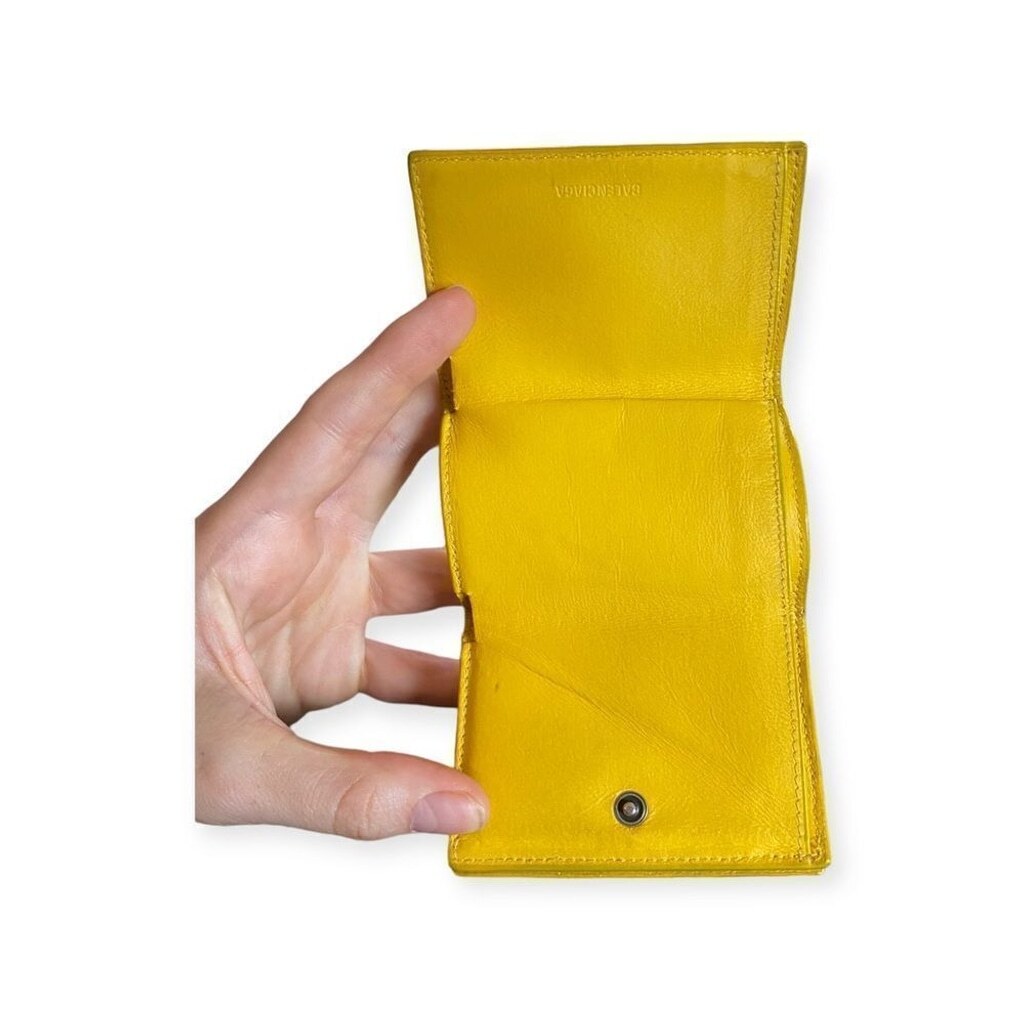 Balenciaga Mini City Wallet Yellow Grained Leather Auth Compact Zip Wallet