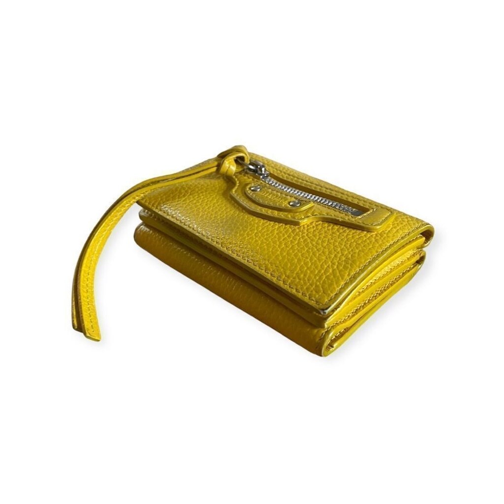 как выглядит Balenciaga Mini City Wallet Yellow Grained Leather Auth Compact Zip Wallet фото