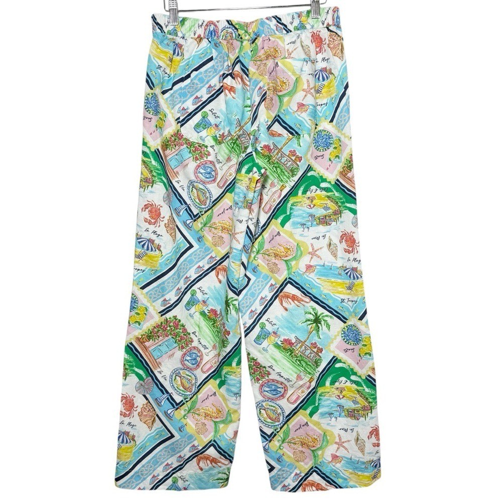как выглядит Talbots Wide Ankle Linen Cotton Pants Summer Vista Print Size Small фото