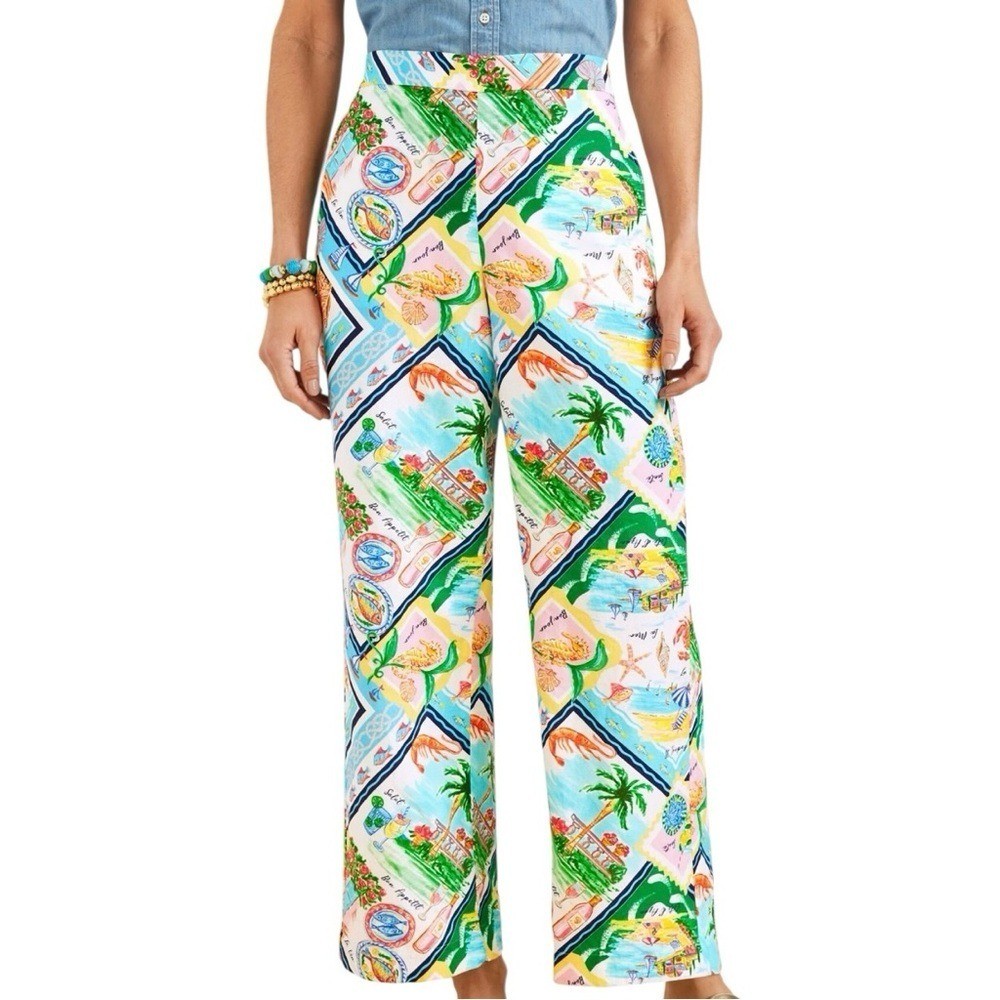 Talbots Wide Ankle Linen Cotton Pants Summer Vista Print Size Small