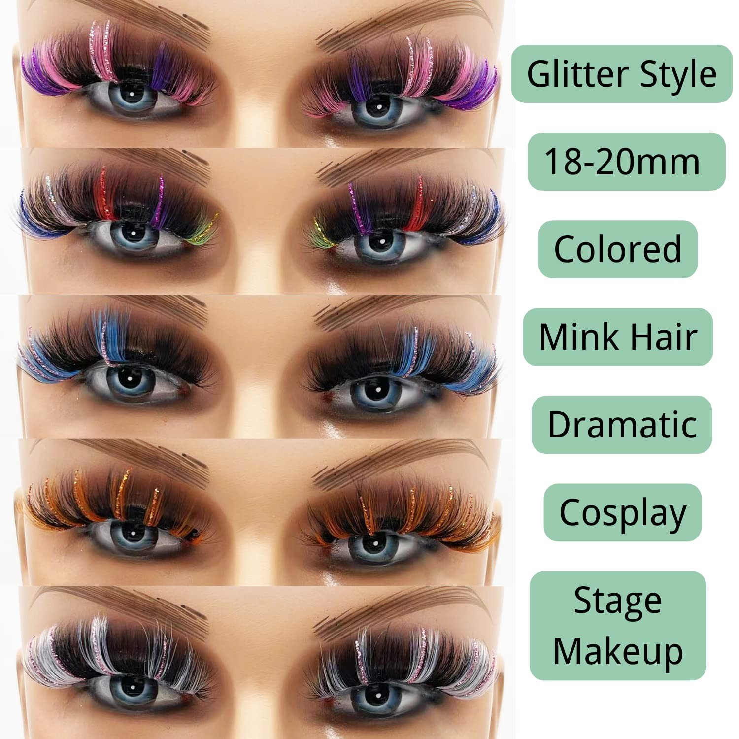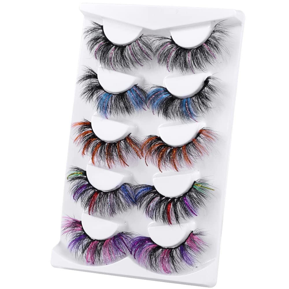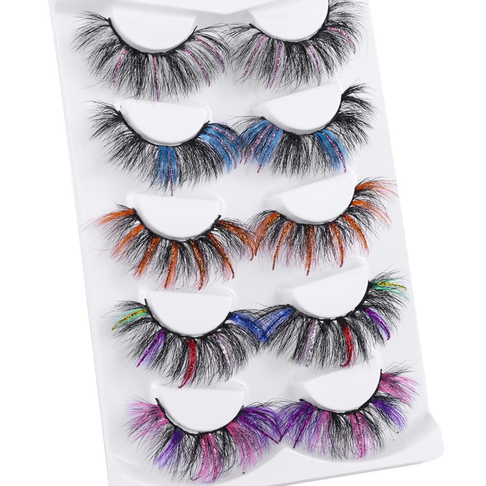 5 Pairs 20mm Glitter Lashes Sequins Colored Lashes Fluffy Mink False Lashes With