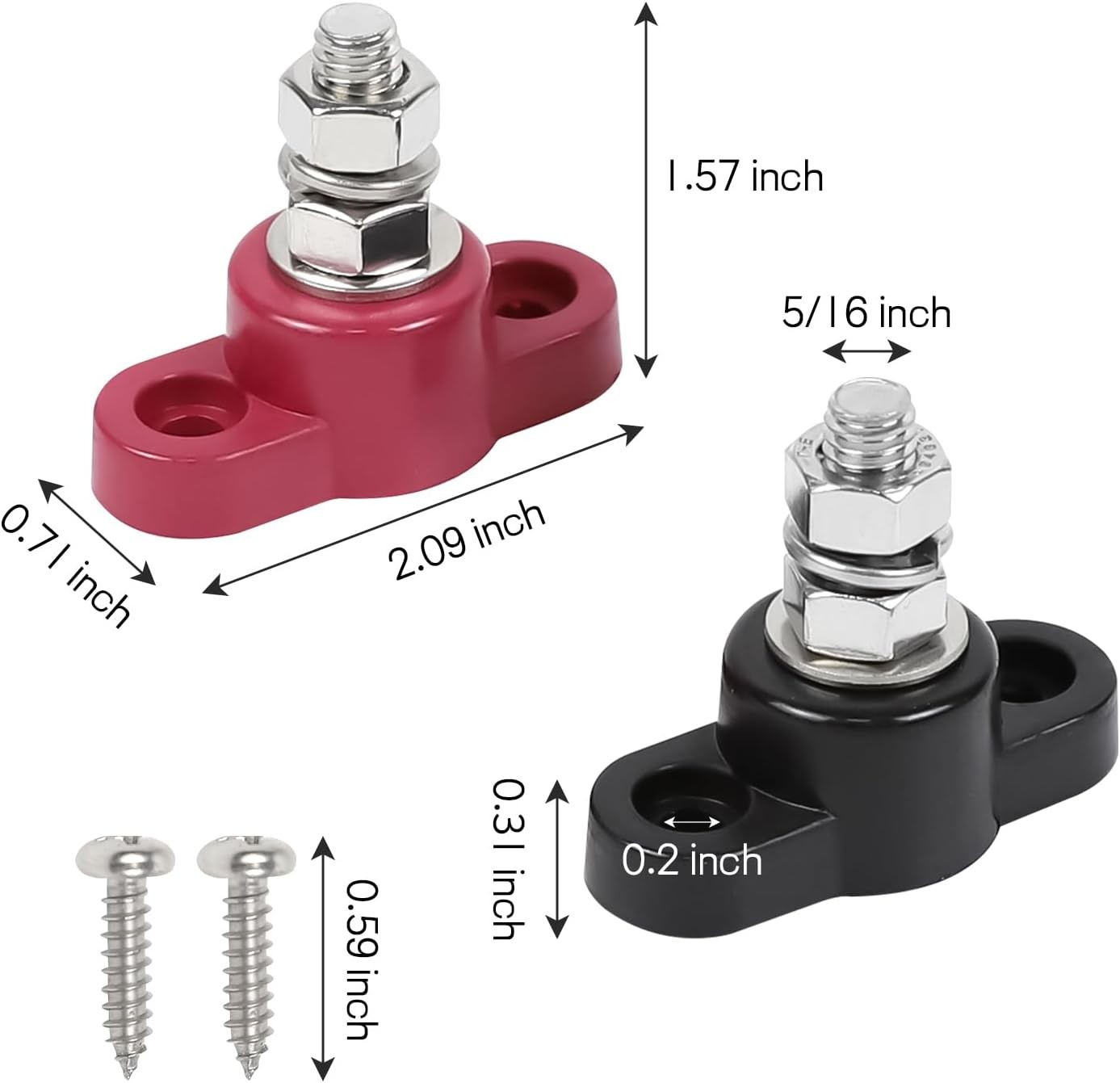 2PCS Single Stud Battery Junction Posts Block, 12V 5/16 Insulated Battery Cable