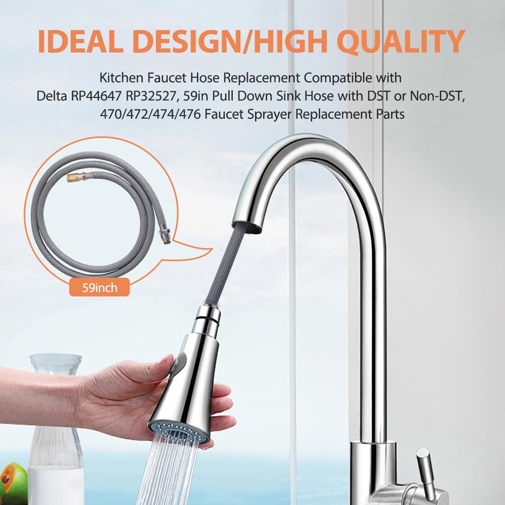 Kitchen Faucet Hose Replacement Compatible with Delta RP44647 RP32527, 59in P...