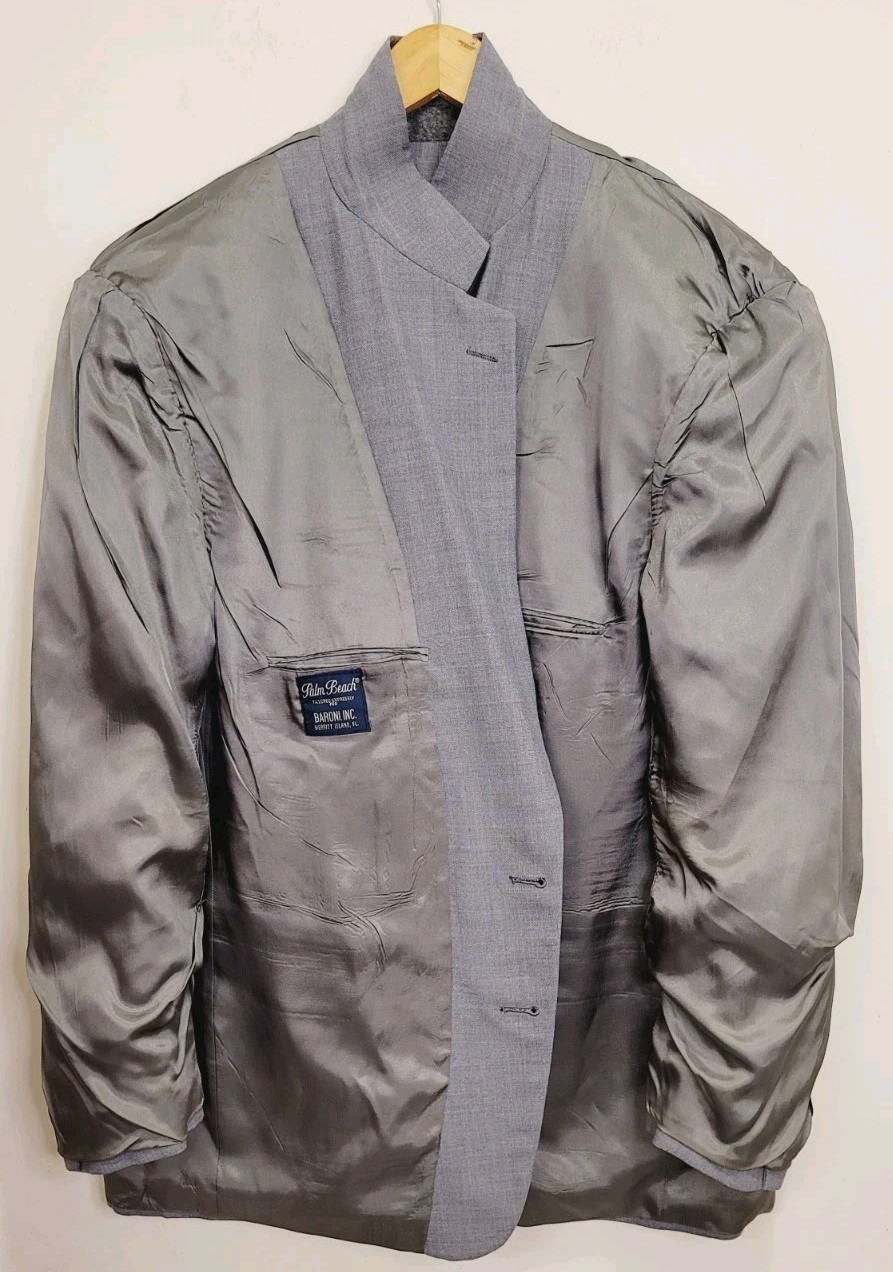 как выглядит Vtg 80s Palm Beach Gray Tropical Sport Coat Island Jacket Gold Button Blazer 54 фото